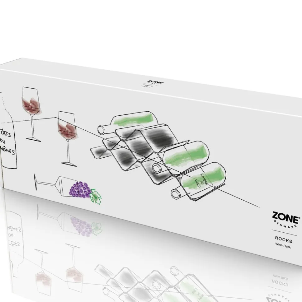 Stilrent og stabilt design. De fleste elsker synet af en fyldt vinreol. Derfor er det praktisk, at vinreolen Rocks kan rumme op til 9 flasker, men nedskaleres i størrelse i takt med, at flaskerne tømmes. Pyramiden bygges op fra bunden, og du kan nemt klikke en etage mere på, hvis du får brug for det.