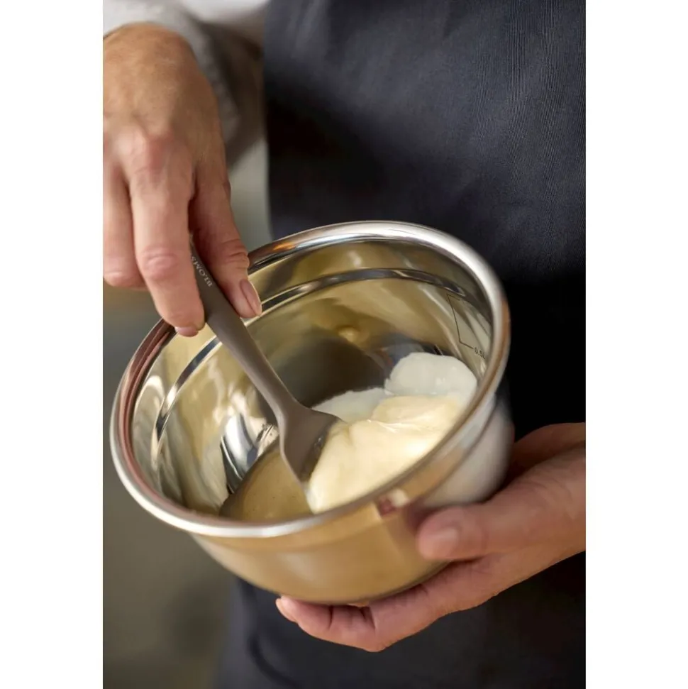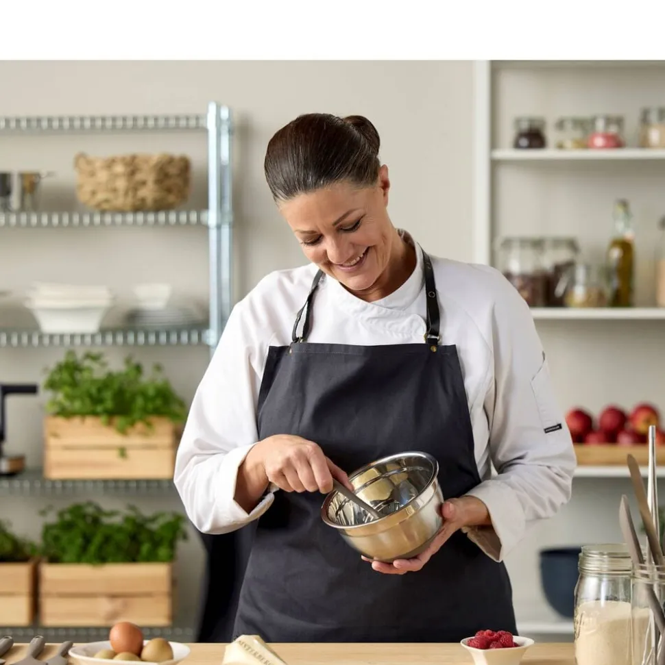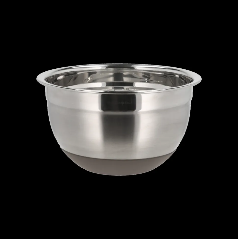 Denne røreskål i rustfrit stål har en skridsikker silikonebund, som sørger for en god stabilitet, mens ingredienserne bliver blandet sammen. Skålen rummer 1,5 liter og er perfekt til de små opgaver, du står overfor i køkkenet. Og så kan den rengøres i opvaskemaskinen, hvilket betyder mindre tid på opvasken og mere tid til at nyde det, du har lavet. Vaskes i opvaskemaskine før første brug.