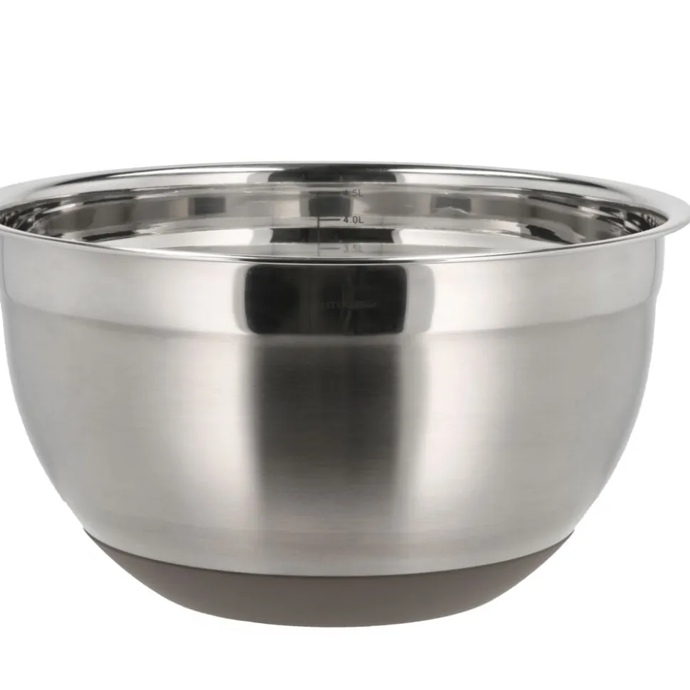Denne røreskål i rustfrit stål har en skridsikker silikonebund, som sørger for en god stabilitet, mens ingredienserne bliver blandet sammen. Skålen rummer 5 liter og er perfekt til de større opgaver, du står overfor i køkkenet. Og så kan den rengøres i opvaskemaskinen, hvilket betyder mindre tid på opvasken og mere tid til at nyde det, du har lavet. Vaskes i opvaskemaskine før første brug.