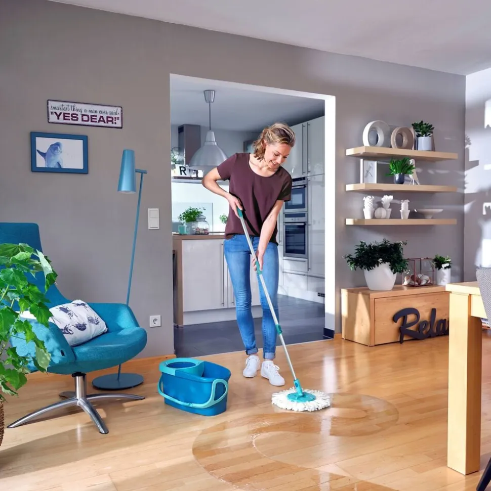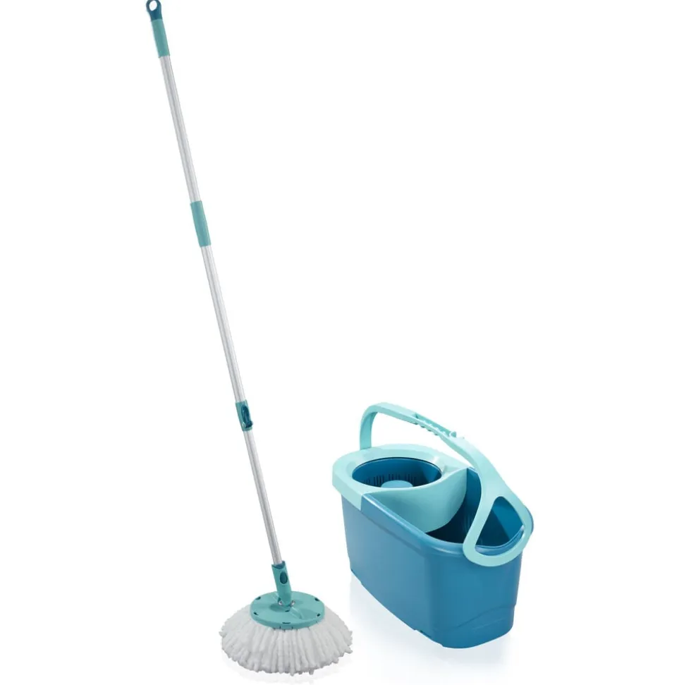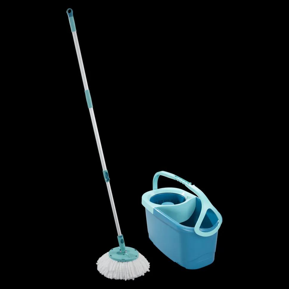 Et komplet gulvvaskersæt til grundig rengøring af alle gulvtyper. Det består af 104-133 cm teleskophåndtag med patenteret centrifugeringsteknologi, en 6 l spand med snurrevrider og et rundt mikroduo moppehoved. Let at vride uden at få snavsede hænder og uden at bøje sig ned.