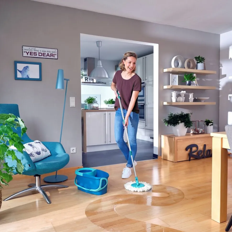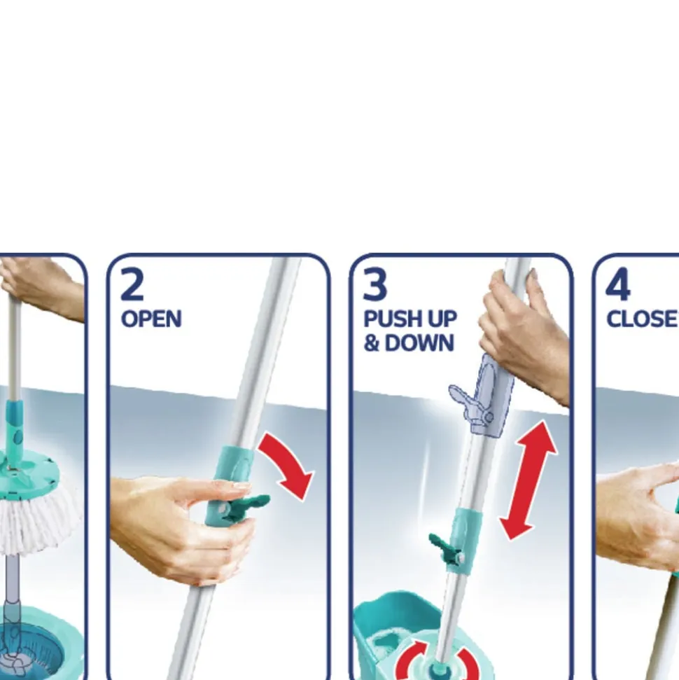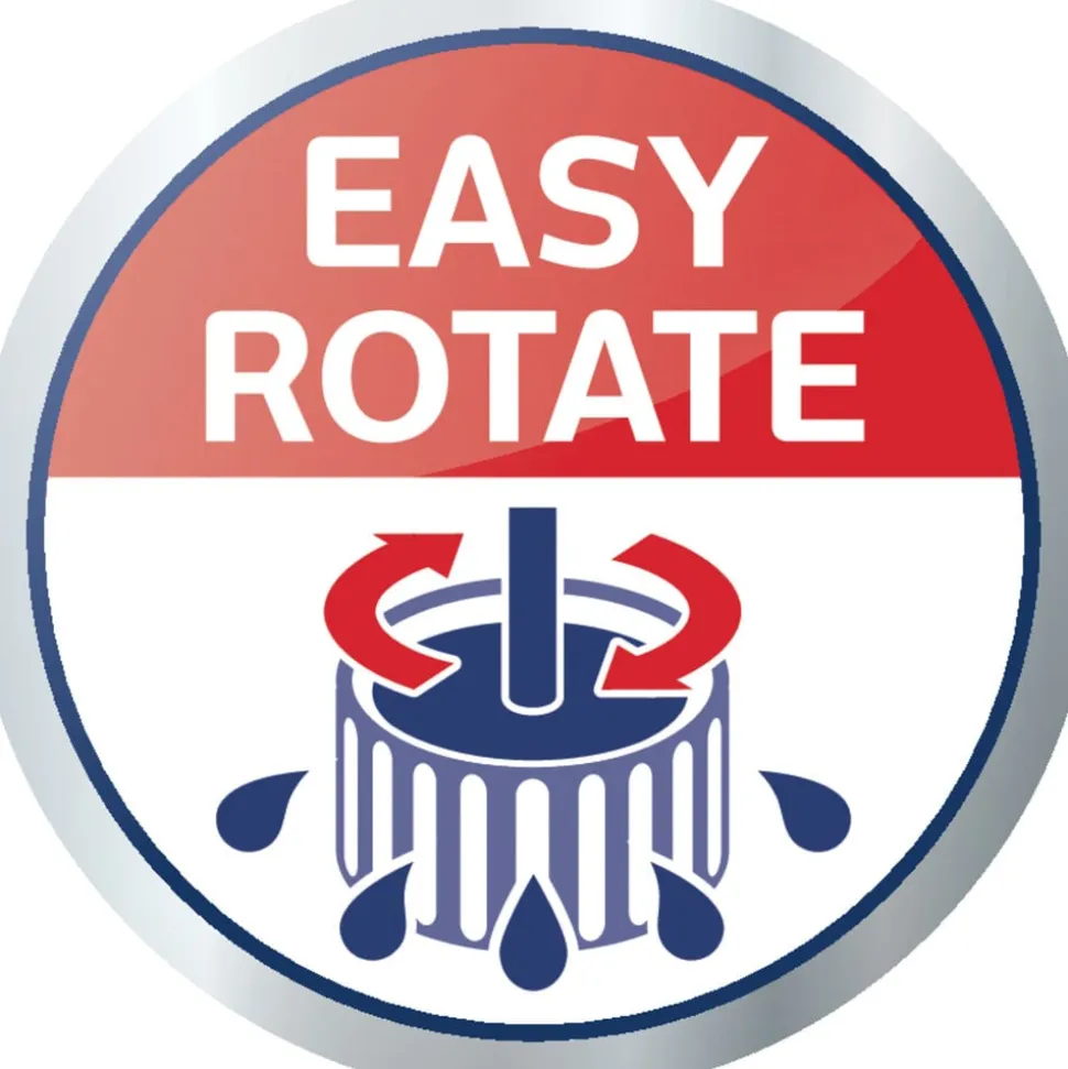 Centrifugeringsteknologien presser overskydende vand ud af moppen, når den ‘pumpes’ i spandens vrider, og frigiver både snavset vand og snavs inde fra fibrene. Du kan nemt bestemme, hvor fugtig moppen skal være, samtidig med at du får en bedre arbejdsstilling og undgår at skulle have hænderne i vandet.