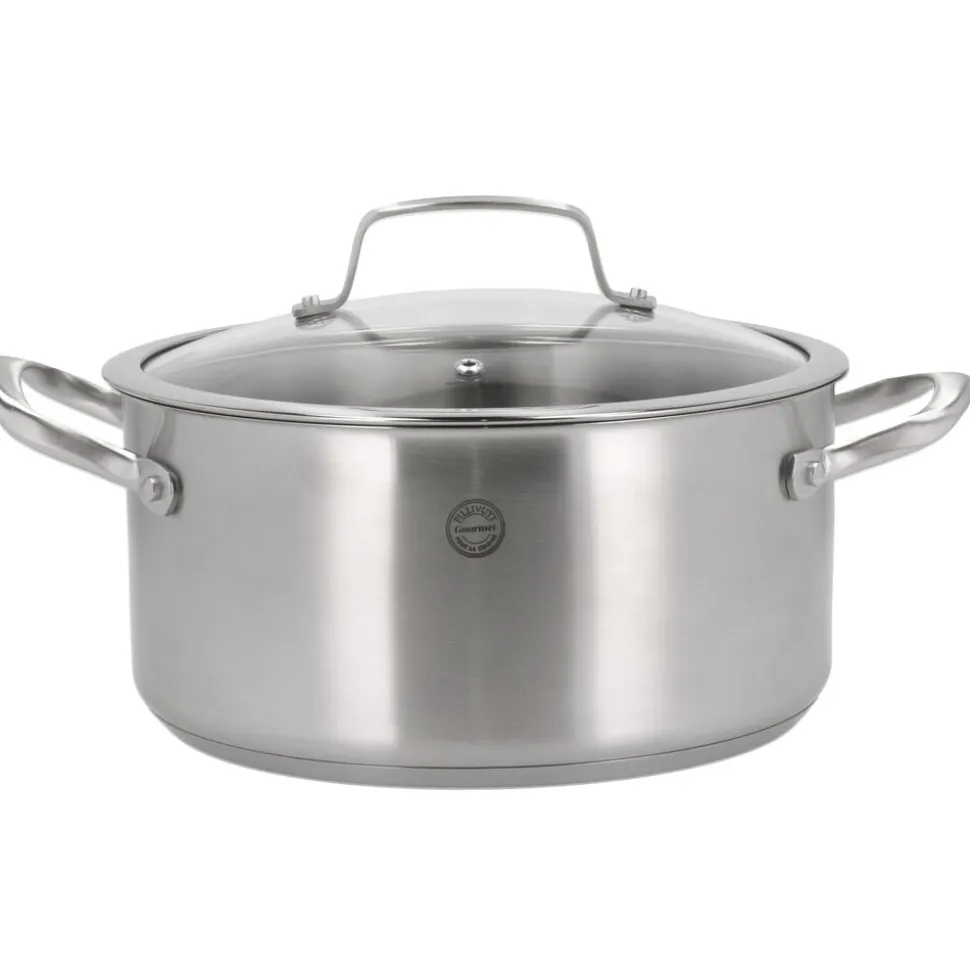 Roya-serien fra Pillivuyt Gourmet er skabt til at give dig de bedste resultater i køkkenet, uanset om du er nybegynder eller erfaren. Roya-seriens krop er fremstillet af 90 % genanvendt rustfrit stål. Greb og bund er fremstillet af rustfrit stål. Sandwichbunden på 4,1 mm giver en ensartet og effektiv varmefordeling.