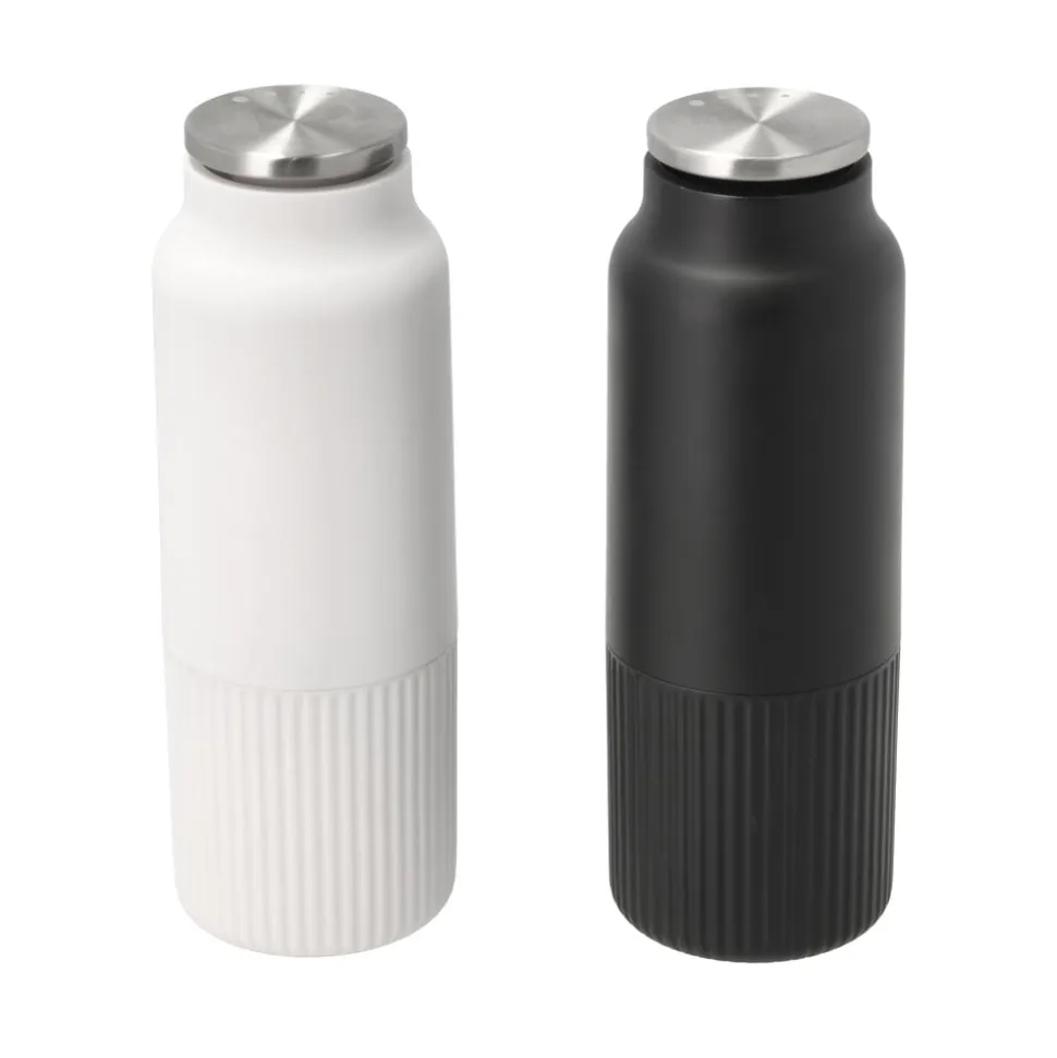 Salt- og peberkværnsættet af ABS-plast, aluminium og rustfrit stål er både flot og funktionelt. Det er let at tage den rigtige kværn, idet saltkværnen er hvid, og peberkværnen er sort. Krydderierne kværnes fra toppen af kværnene, hvilket betyder, at du slipper for drys på bordet. Malegraden kan indstilles efter din smag. Den justeres i toppen, mens påfyldning af salt og peber sker i bunden. Kværnenes højde er 16,5 cm med en diameter på 5,7 cm.