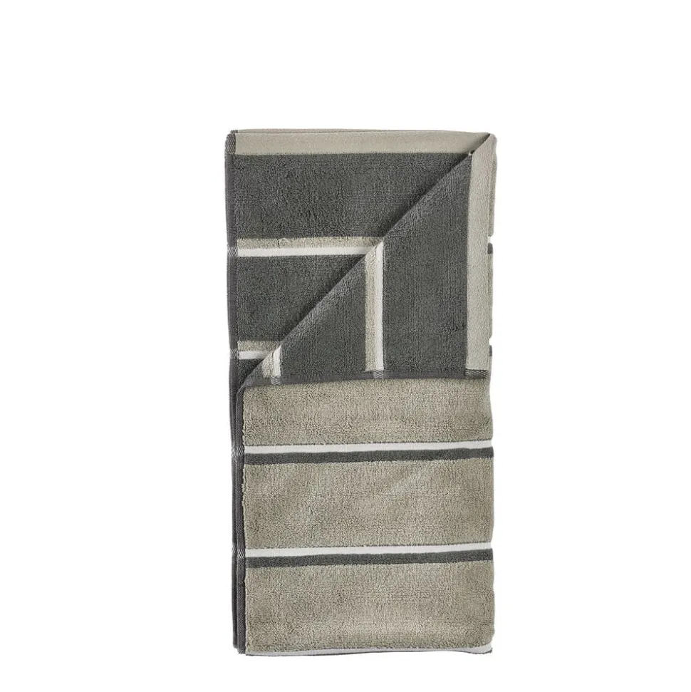 De retroinspirerede striber tilføjer et grafisk, urbant touch, og med en blød, kraftig kvalitet i garnfarvet 600 grams bomuld, føles håndklædet lige så lækkert, som det ser ud.