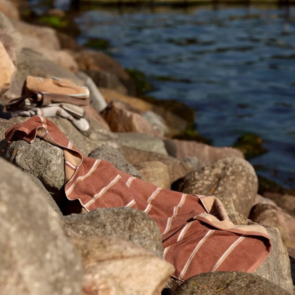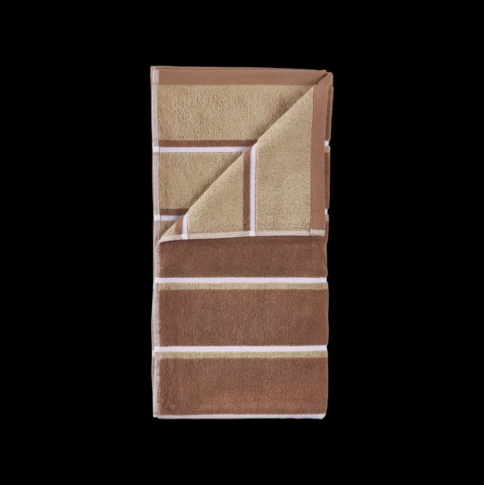 De retroinspirerede striber tilføjer et grafisk, urbant touch, og med en blød, kraftig kvalitet i garnfarvet 600 grams bomuld, føles håndklædet lige så lækkert, som det ser ud.