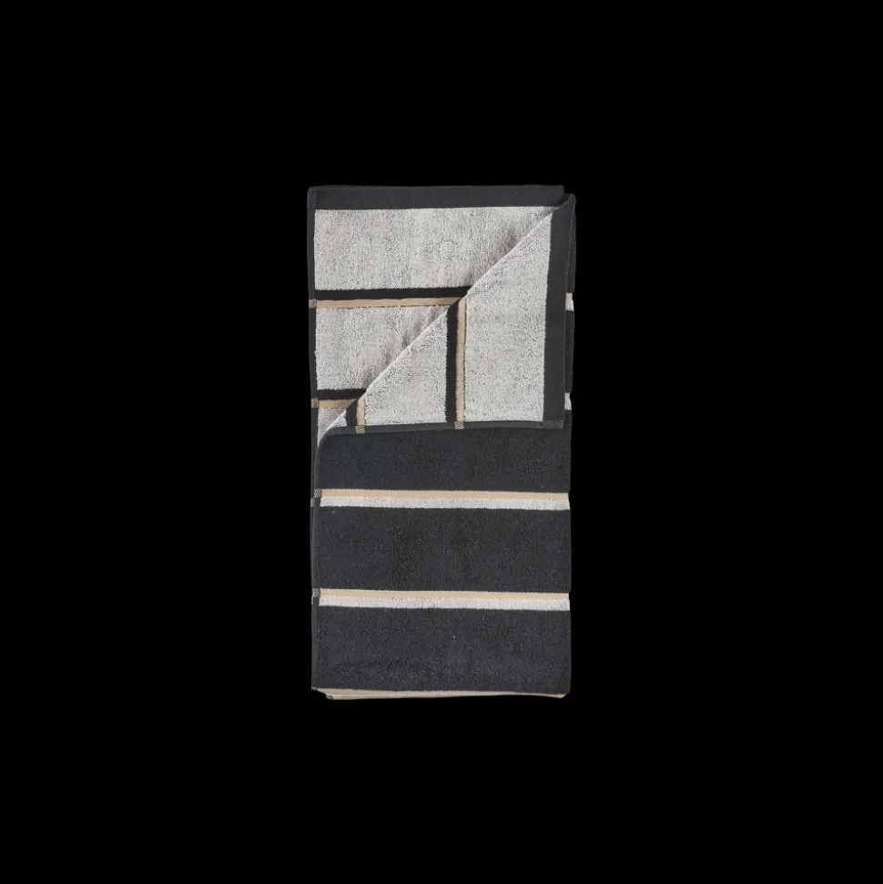 De retroinspirerede striber tilføjer et grafisk, urbant touch, og med en blød, kraftig kvalitet i garnfarvet 600 grams bomuld, føles håndklædet lige så lækkert, som det ser ud.