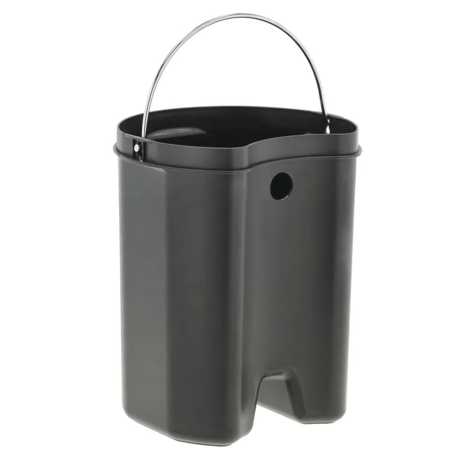 Den 4-liters pedalspand i plast har et buttet cylinderkorpus. Looket komplimenteres på charmerende vis af to cirkelformer. Den ene findes på toppen af låget som en dekorativ detalje, den anden udformet som en lille rund pedal på fronten.