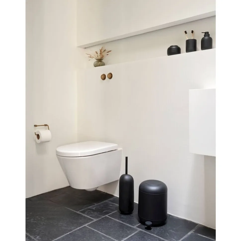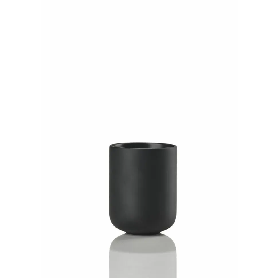 Ved vasken finder du en sød cylinderformet sæbedispenser med et fint lille pumpehoved. Den matcher det klassiske tandbørstekrus, der, ligesom seriens øvrige designs, er udført i stentøj. Takket være stentøjets tyngde og den runde bund står tandbørstekruset sikkert på bordet. Køb evt. flere og brug et af dem til make-up-børster, barbergrej eller andre hverdagsfavoritter, der skal være inden for rækkevidde.