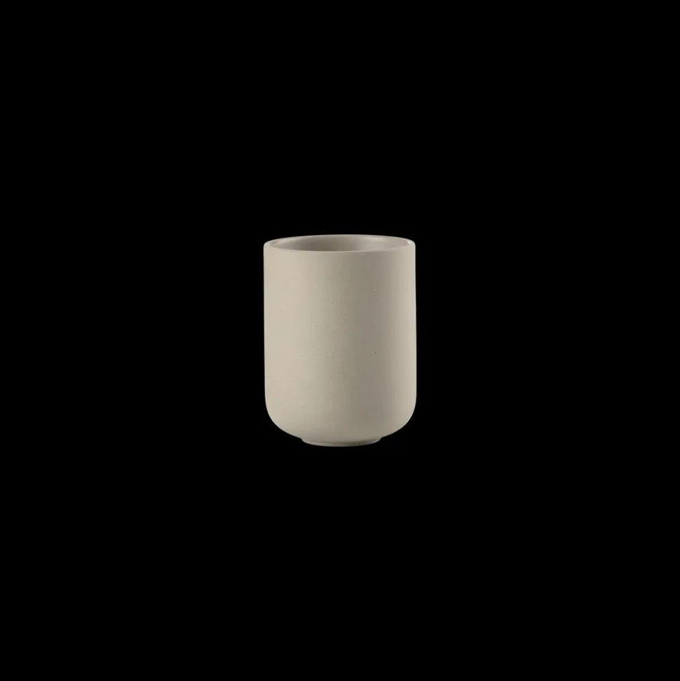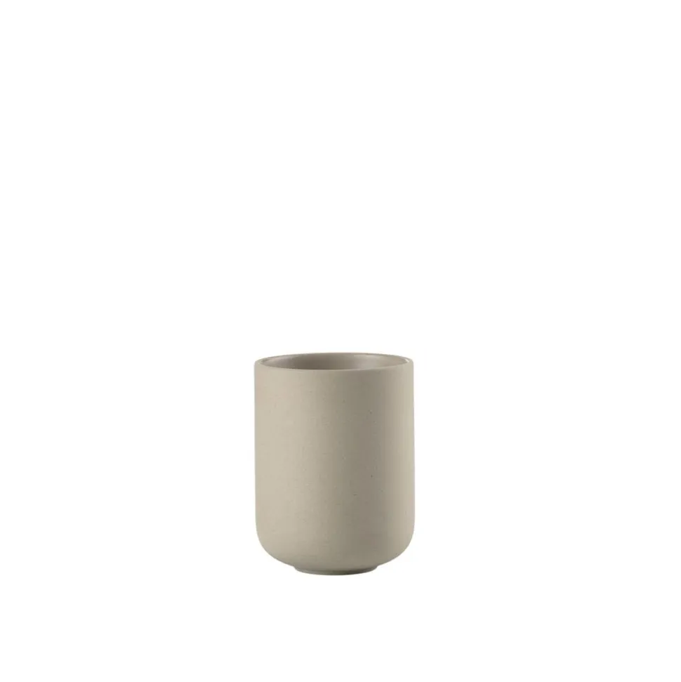 Ved vasken finder du en sød cylinderformet sæbedispenser med et fint lille pumpehoved. Den matcher det klassiske tandbørstekrus, der, ligesom seriens øvrige designs, er udført i stentøj. Takket være stentøjets tyngde og den runde bund står tandbørstekruset sikkert på bordet. Køb evt. flere og brug et af dem til make-up-børster, barbergrej eller andre hverdagsfavoritter, der skal være inden for rækkevidde.