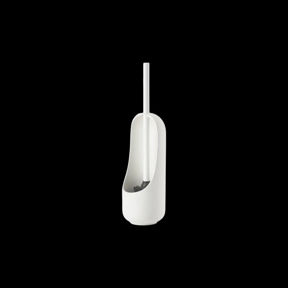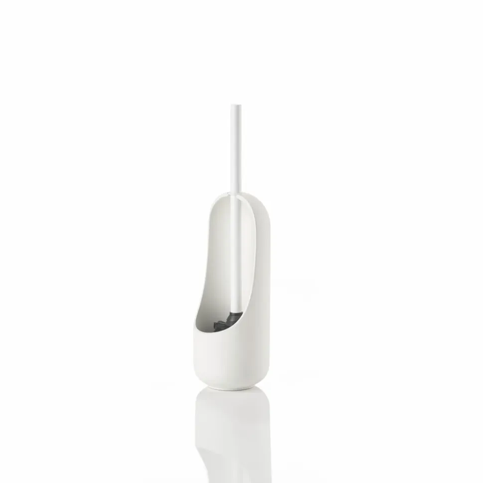 Toiletbørsten er en nyfortolkning af de traditionelle varianter på markedet. Takket være en åben bagside, kan du afhængig af vinkel selv vælge, om børsten skal skjules bagpå eller vendes udad. Trods det lette udtryk står toiletbørsten stabilt på gulvet. Grebet er godt, og det er nemt at rense kummen.