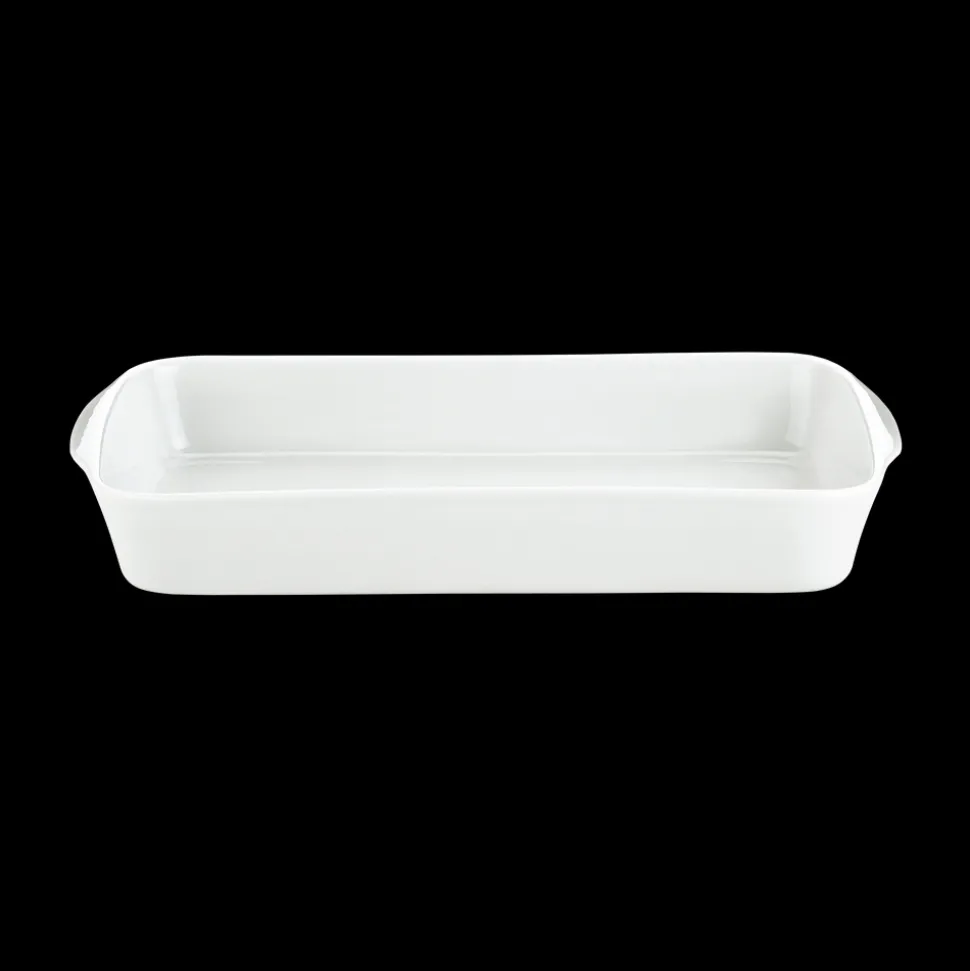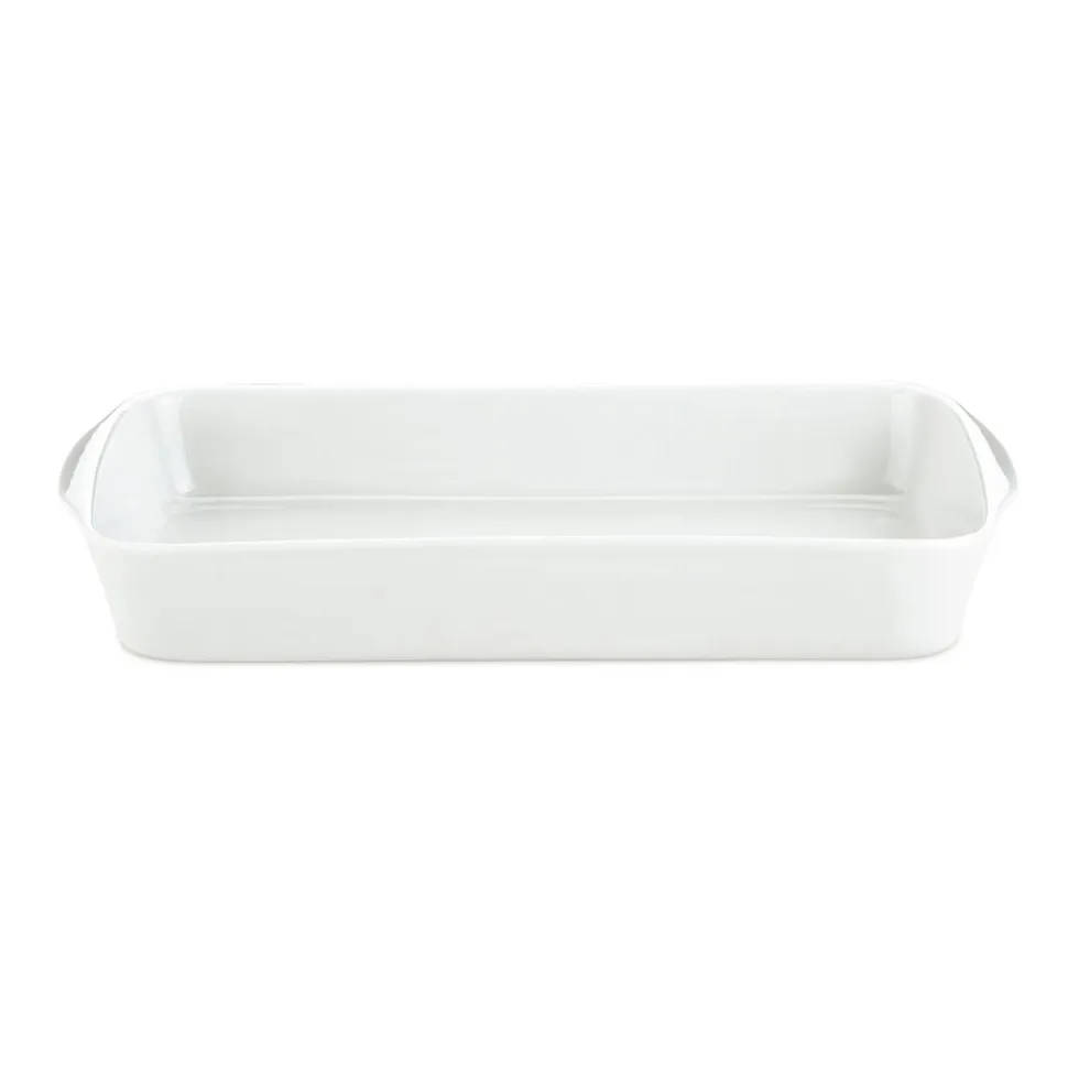 Rektangulært fad på 24 x 14,5 cm med lave kanter til ovn, grill og servering.