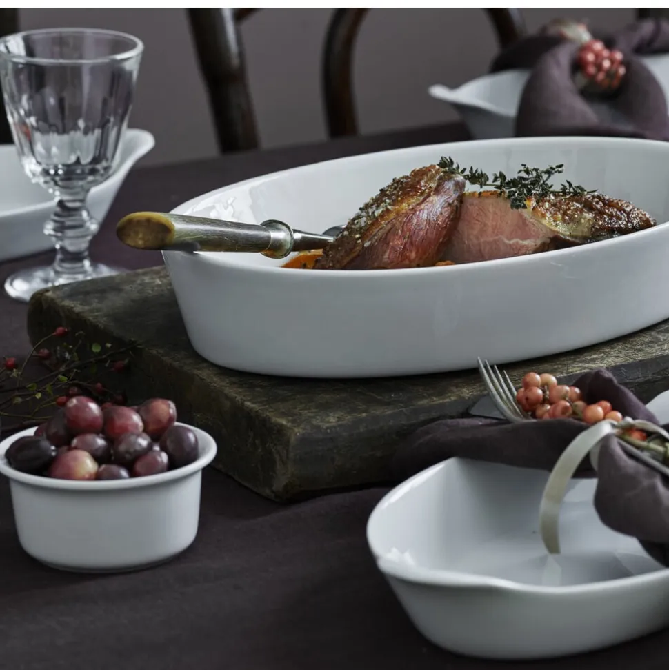 Klassisk oval serveringstallerken på 23 x 13 cm med håndtag, der også kaldes en ”æggepande”. Kan sættes direkte på komfuret og i ovnen.