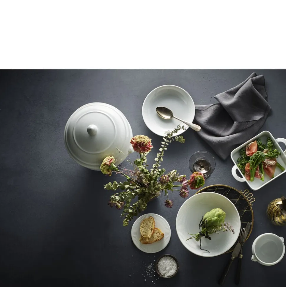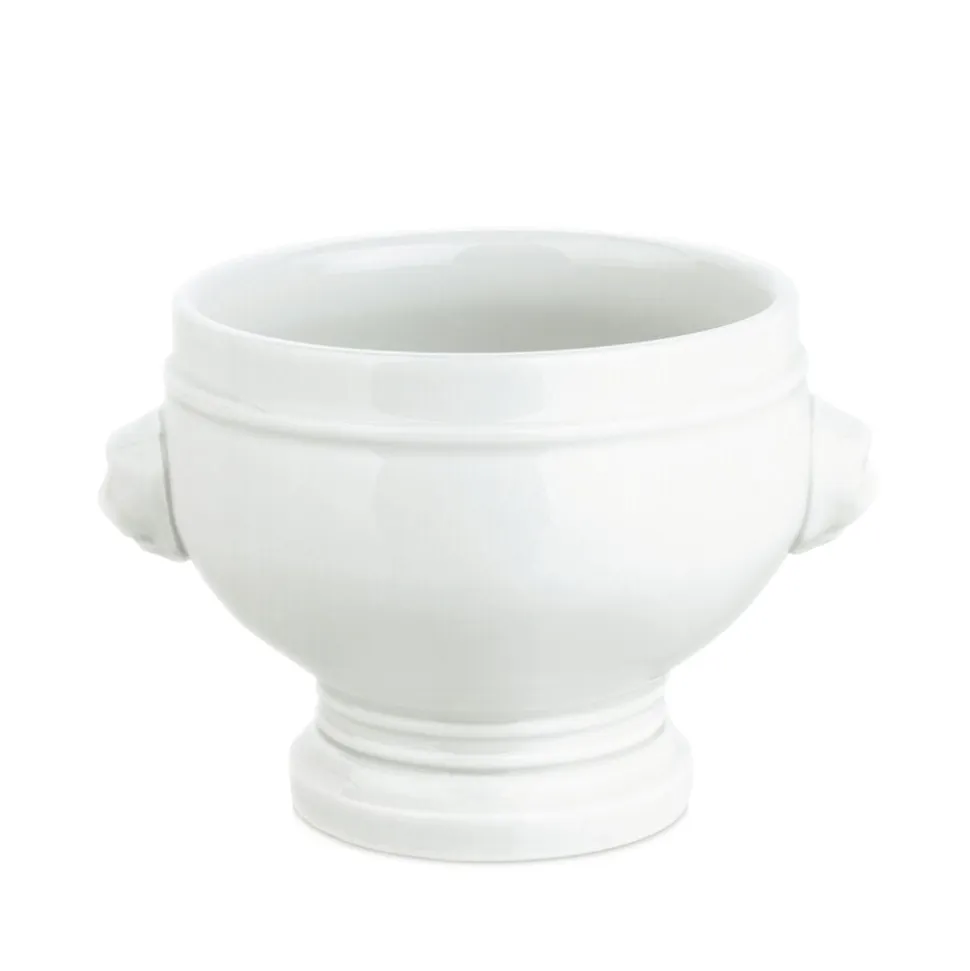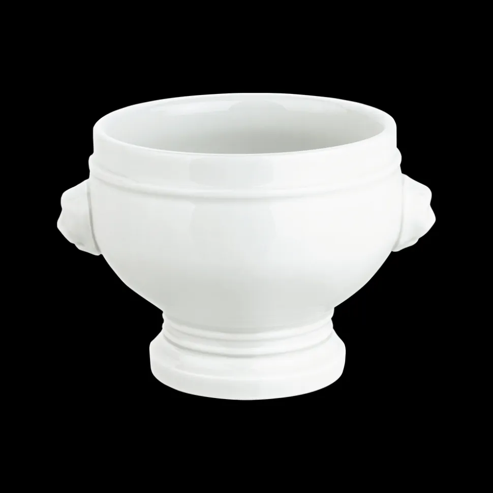 Pillivuyts klassiske hånddrejede suppeskål med løvehoveder som hanke, der kan indeholde 50 cl.