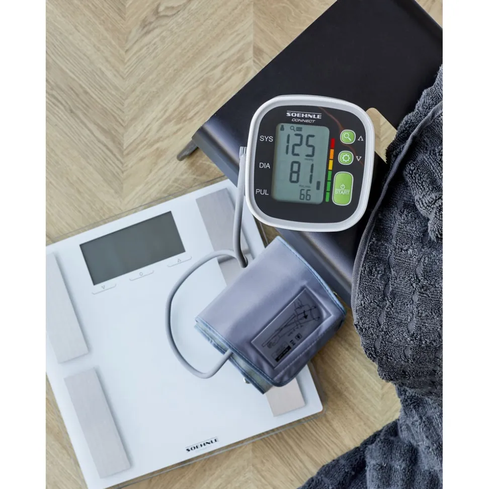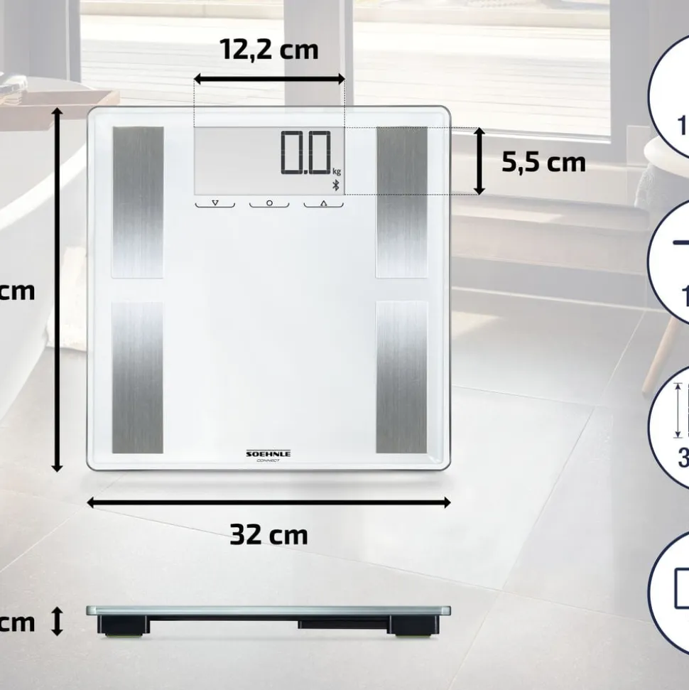 Vægten sender dine målinger til Soehnles egen S-Connect app, der er tilgængelig til iOS og Android, hvor du blandt andet kan indtaste din ønskevægt og få et nemt og overskueligt overblik. Du kan se din vægt, fedt- og væskeprocent, analyse af din muskelmasse og det anbefalede daglige kalorieindtag, forskellen i forhold til sidste vejning og hvor langt du har igen til ønskevægten. Du kan også se din BMI og forskellen i forhold til det gennemsnitlige BMI.