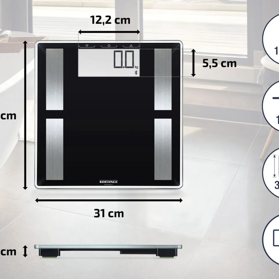 Soehnle Shape Sense Connect 50 Kropsanalysevægt tænder automatisk og viser din vægt på det ekstra store LCD-display, der er meget nemt at aflæse.