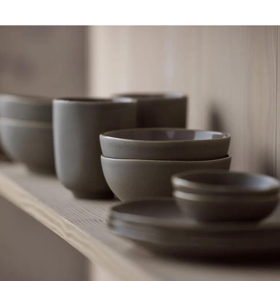 Shoku-stellet forener japansk minimalisme med skandinavisk enkelhed. Med sine organiske former og dæmpede farver skaber Shoku en harmonisk og rolig atmosfære omkring bordet. Stellets dele er designet med rene linjer og silkeblød, mat og blank glasur, der understreger en naturlig æstetik og løfter måltidets visuelle og kulinariske oplevelse. Shoku betyder mad eller spise på japansk og symboliserer glæden ved både maden og samværet omkring bordet. Med sine holdbare materialer og tidløse design er Shoku-stellet det ideelle valg til både daglig brug og særlige anledninger, hvor skønhed og funktionalitet mødes.