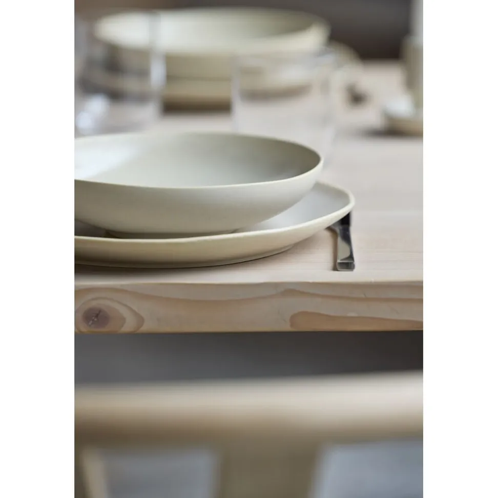 Shoku-stellet forener japansk minimalisme med skandinavisk enkelhed. Med sine organiske former og dæmpede farver skaber Shoku en harmonisk og rolig atmosfære omkring bordet. Stellets dele er designet med rene linjer og silkeblød, mat og blank glasur, der understreger en naturlig æstetik og løfter måltidets visuelle og kulinariske oplevelse. Shoku betyder mad eller spise på japansk og symboliserer glæden ved både maden og samværet omkring bordet. Med sine holdbare materialer og tidløse design er Shoku-stellet det ideelle valg til både daglig brug og særlige anledninger, hvor skønhed og funktionalitet mødes.