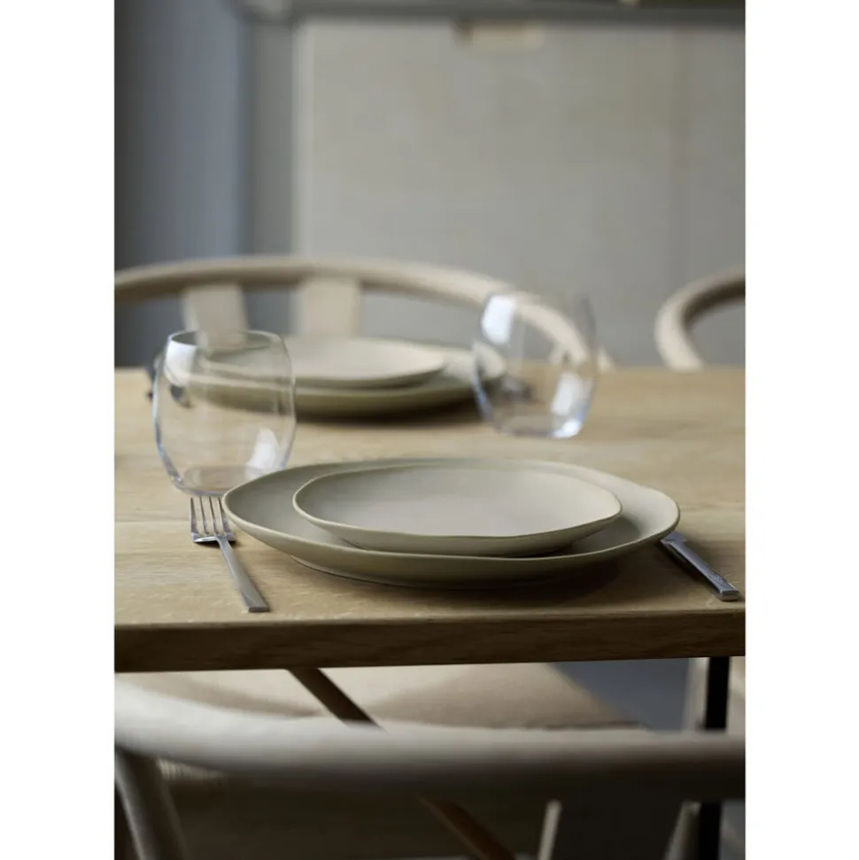 Shoku-stellet forener japansk minimalisme med skandinavisk enkelhed. Med sine organiske former og dæmpede farver skaber Shoku en harmonisk og rolig atmosfære omkring bordet. Stellets dele er designet med rene linjer og silkeblød, mat og blank glasur, der understreger en naturlig æstetik og løfter måltidets visuelle og kulinariske oplevelse. Shoku betyder mad eller spise på japansk og symboliserer glæden ved både maden og samværet omkring bordet. Med sine holdbare materialer og tidløse design er Shoku-stellet det ideelle valg til både daglig brug og særlige anledninger, hvor skønhed og funktionalitet mødes.