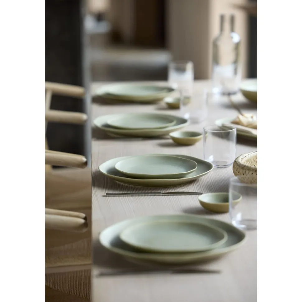 Shoku-stellet forener japansk minimalisme med skandinavisk enkelhed. Med sine organiske former og dæmpede farver skaber Shoku en harmonisk og rolig atmosfære omkring bordet. Stellets dele er designet med rene linjer og silkeblød, mat og blank glasur, der understreger en naturlig æstetik og løfter måltidets visuelle og kulinariske oplevelse. Shoku betyder mad eller spise på japansk og symboliserer glæden ved både maden og samværet omkring bordet. Med sine holdbare materialer og tidløse design er Shoku-stellet det ideelle valg til både daglig brug og særlige anledninger, hvor skønhed og funktionalitet mødes.