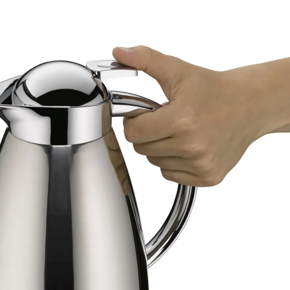 Alfi Signo matcher tidens trends med sit stilrene og minimalistiske design. Termokande i rustfrit stål. Dobbeltvægget AlfiDur-indsats i isolerende og hærdet vakuum-glas. Holder varmt i op til 12 timer og koldt i op til 24 timer. AromaSafe-princippet bevarer kaffens runde smag. Unikt og praktisk hældesystem. Kan betjenes med én hånd. Ergonomisk, forkromet metalhåndtag. Fri for BPA.