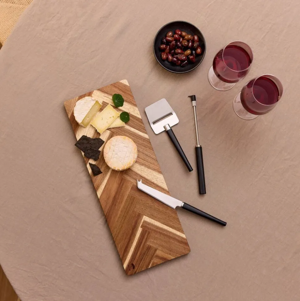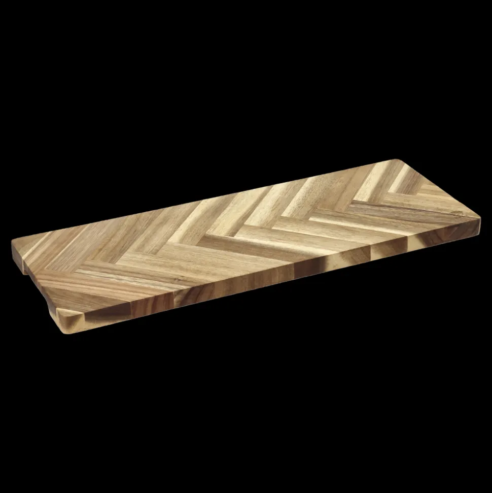 Stort serveringsbræt af akacietræ i smukt sildebensmønster. Brug det flotte serveringsbræt til servering af pizza, pålæg, bruschetta og andre antipasti-retter, ost eller andre retter, der skal præsenteres flot. 45 x 16,5 cm.