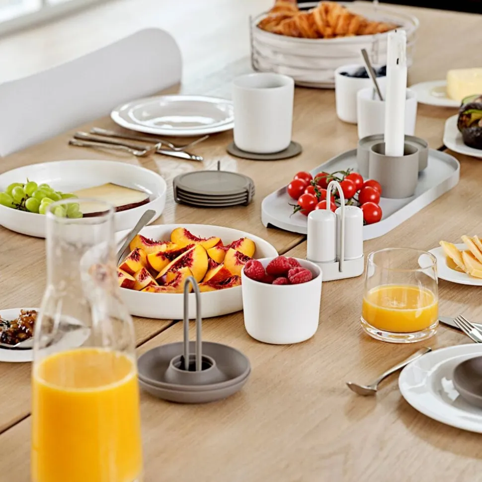 Designertrioen VE2 står bag det stilsikre design og nærmest svævende udtryk – og skulle det ske, at en dugdråbe glider af glasset, bliver den inden for glasbrikkens diskrete kant.
