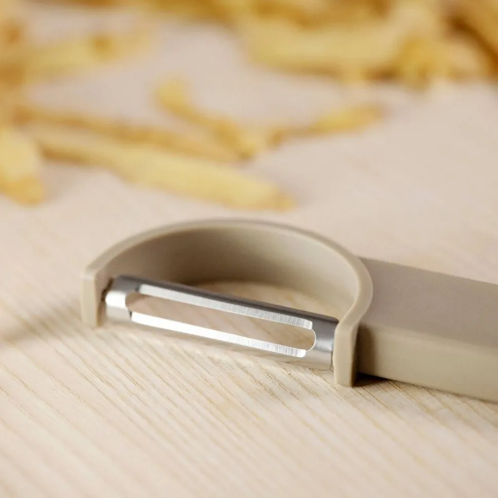 Effektivitet er i fokus, når du tager denne grøntsagsskræller frem fra køkkenskuffen. Det lille værktøj er en uvurderlig ven, når der hurtigt skal skrælles – uanset hvilken hånd, du foretrækker at bruge, eller hvilken retning, du vil skrælle i, væk fra eller imod dig selv. Klingen er lavet i knivskarpt kvalitetsstål, og grebet er godt.