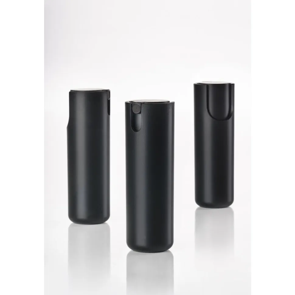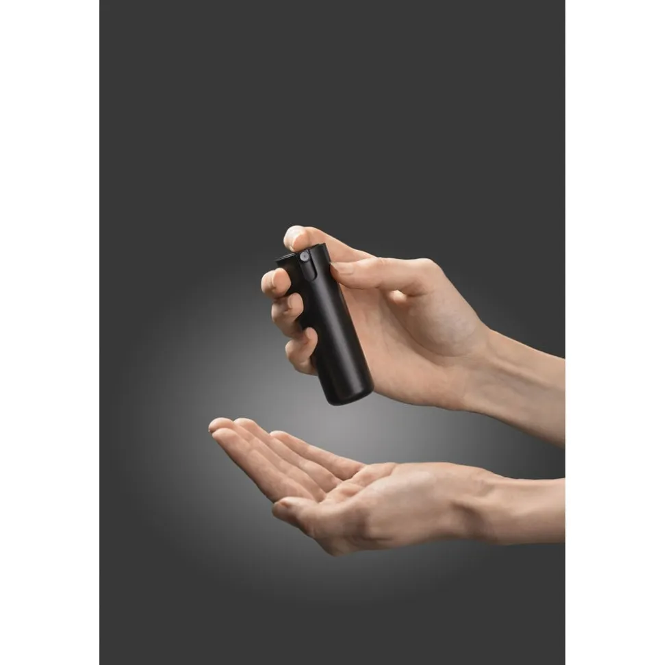 Go Clean har ikke låg og kan derfor hurtigt og enkelt betjenes med én hånd, uden at den lækker i tasken. Den måler 8,5 x 2,5 cm, og den ydre beholder er fremstillet af ABS, mens den refillbare beholder er af PET. Den leveres uden indhold, men er let at påfylde med din favoritspray, så du altid har frisk håndsprit med dig.