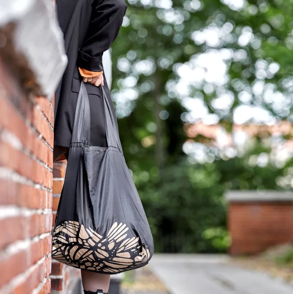 Go Bags er fremstillet i slidstærkt kunststof og forsynet med hank, så de både kan bæres i hånden og over skulderen. De har en lille sidelomme til f.eks. nøgle eller mobil, og når du har tømt dit net, folder du det ind i lommen. Så fylder det næsten ingenting og er let at have med i tasken, så du altid har ekstra plads med på farten. Go Bags måler 20 x 7 x 28 cm.