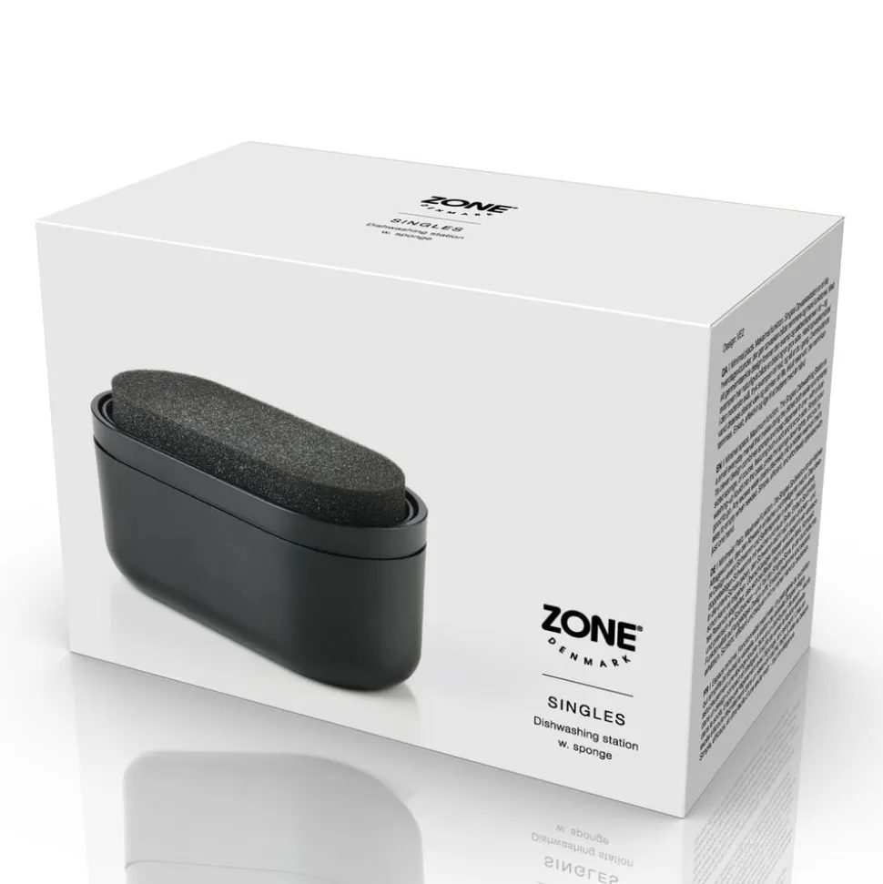 Singles opvaskestation er et lille hverdagsvidunder, der gør opvasken både nemmere og mere funktionel. Med sit gennemtænkte design forener den svamp og sæbedispenser i ét – og svampen har naturligvis både en blød og en grov side. Hæld opvaskemiddel i den nederste skål, tryk svampen let ned, og så er du i gang. Overskydende vand drænes diskret væk og samles i et lille, skjult reservoir, der nemt kan tømmes.