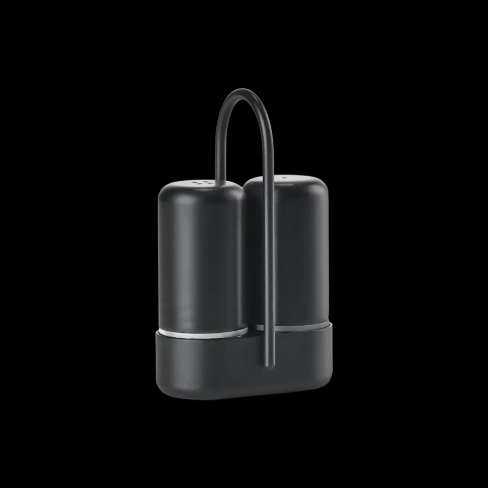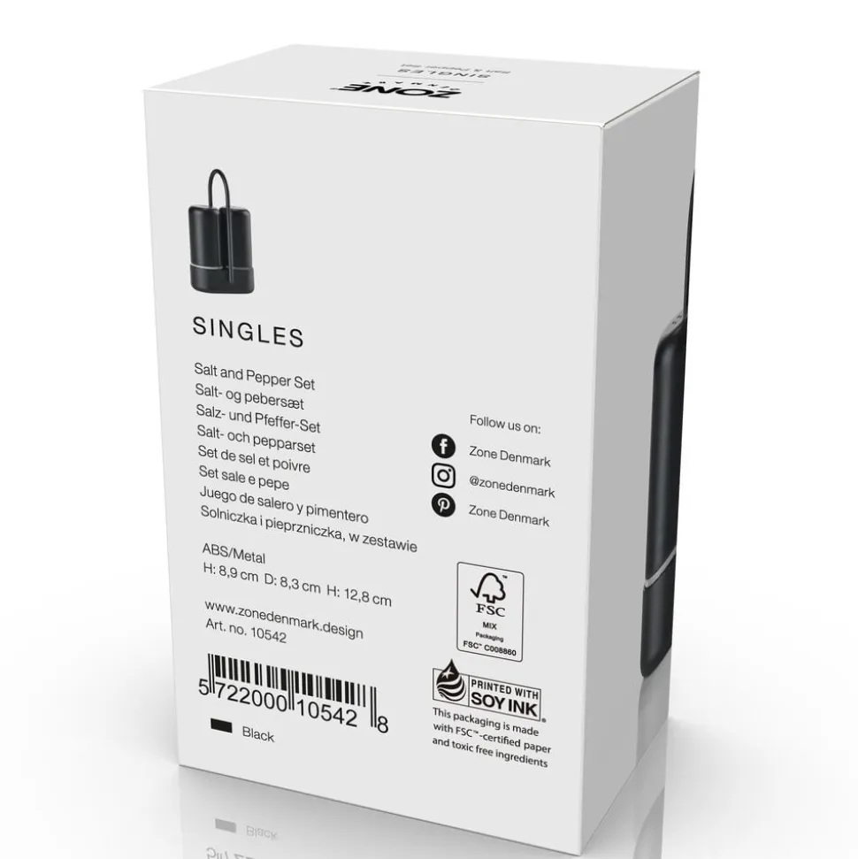 Med dette power couple fra Zone Singles bliver det lettere at huske at få salt og peber på bordet. De er nemlig samlet i en fiks holder med hank, så de blot kan flyttes med én hånd. En diskret ring gør det let at skelne salt og peber fra hinanden.