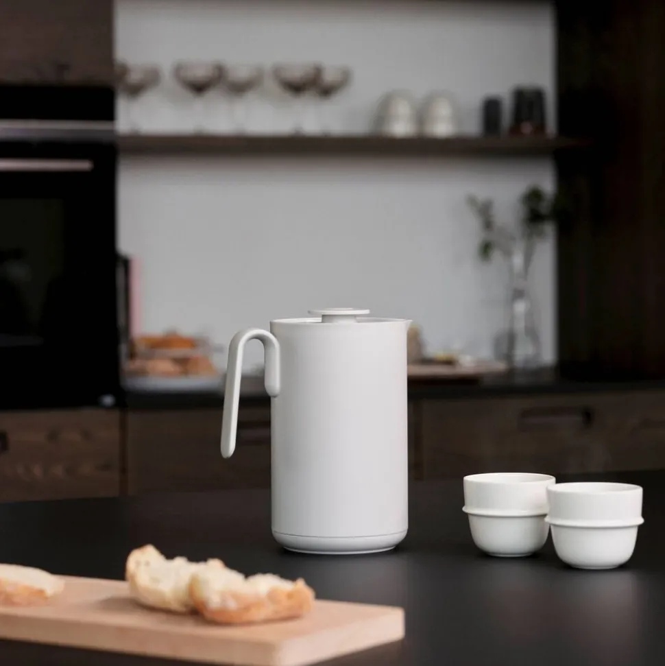 Singles Termokanden gør det, de fleste termokander gør – holder varme drikke varme. Den gør det bare lidt smukkere med sine ultraenkle linjer designet af danske VE2 og indbydende farver, der klæder din kaffe. Den har et praktisk klik-låg, så du slipper for at dreje, når du skal skænke. Et enkelt tryk på toppen er nok, så flyder det sorte guld i en fin stråle. Kanden har en glaskolbe inderst og en PP-skal yderst.