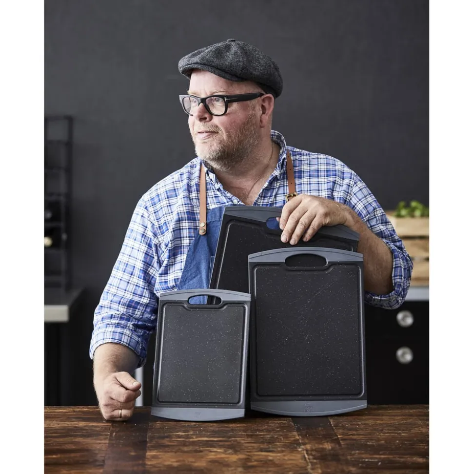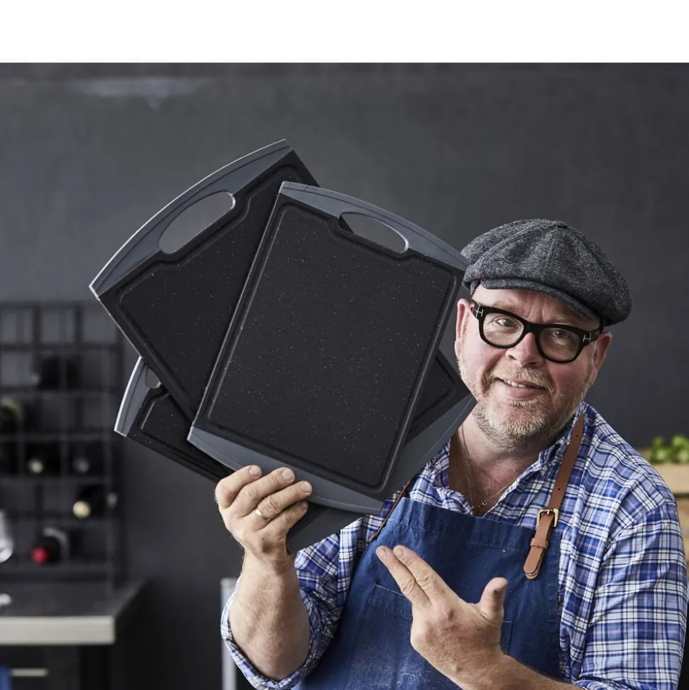 Skærebrættet er fremstillet med en skæreflade i PP plast og kant i TPE gummi.
