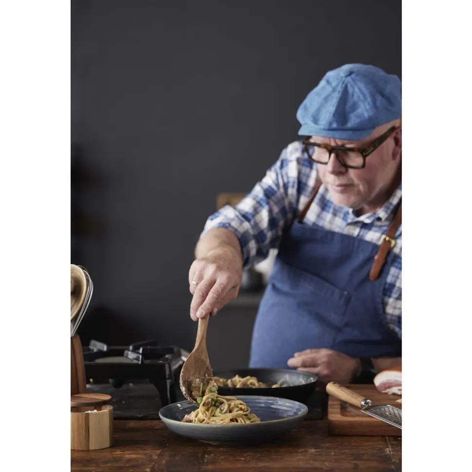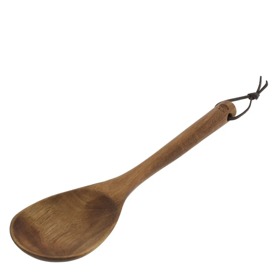 Ske i oliebehandlet akacietræ. Rundt hoved. Skeen kan med fordel efterbehandles med madolie et par gange om året. Vaskes af med lunkent vand og mild sæbe. Lægges aldrig i blød. Ikke egnet til maskinopvask. 30 x 8 cm.