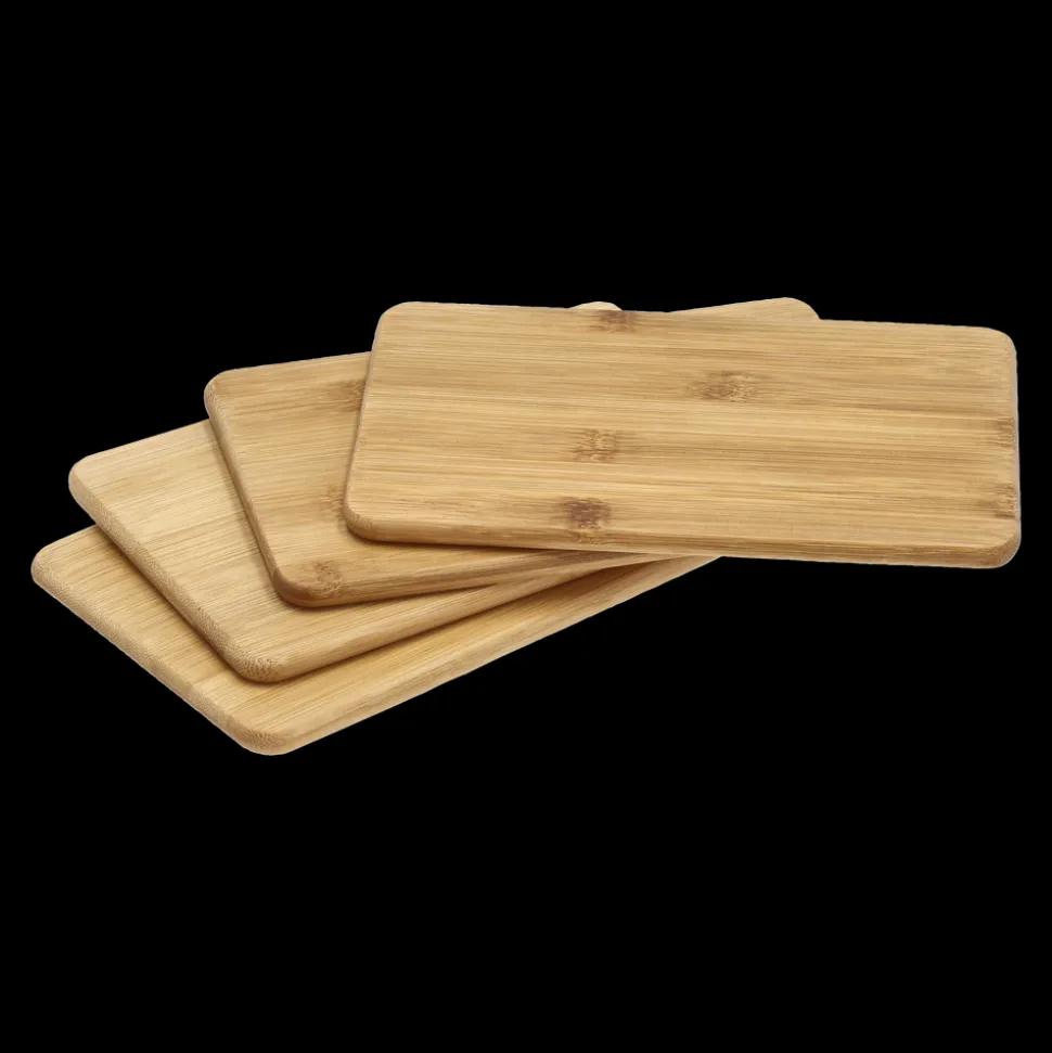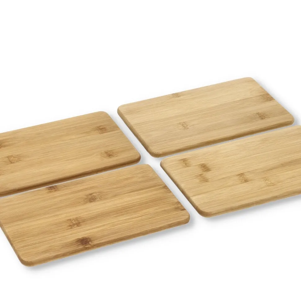 4 funktionelle smørebrætter i bambus i en praktisk størrelse på 19 x 12 cm. De er fine både som smørebrætter på morgen- eller frokostbordet og til små anretninger med ost eller tapas. Eller brug dem som flotte bordskånere på middagsbordet. Vaskes i hånden med varmt vand og sæbe.