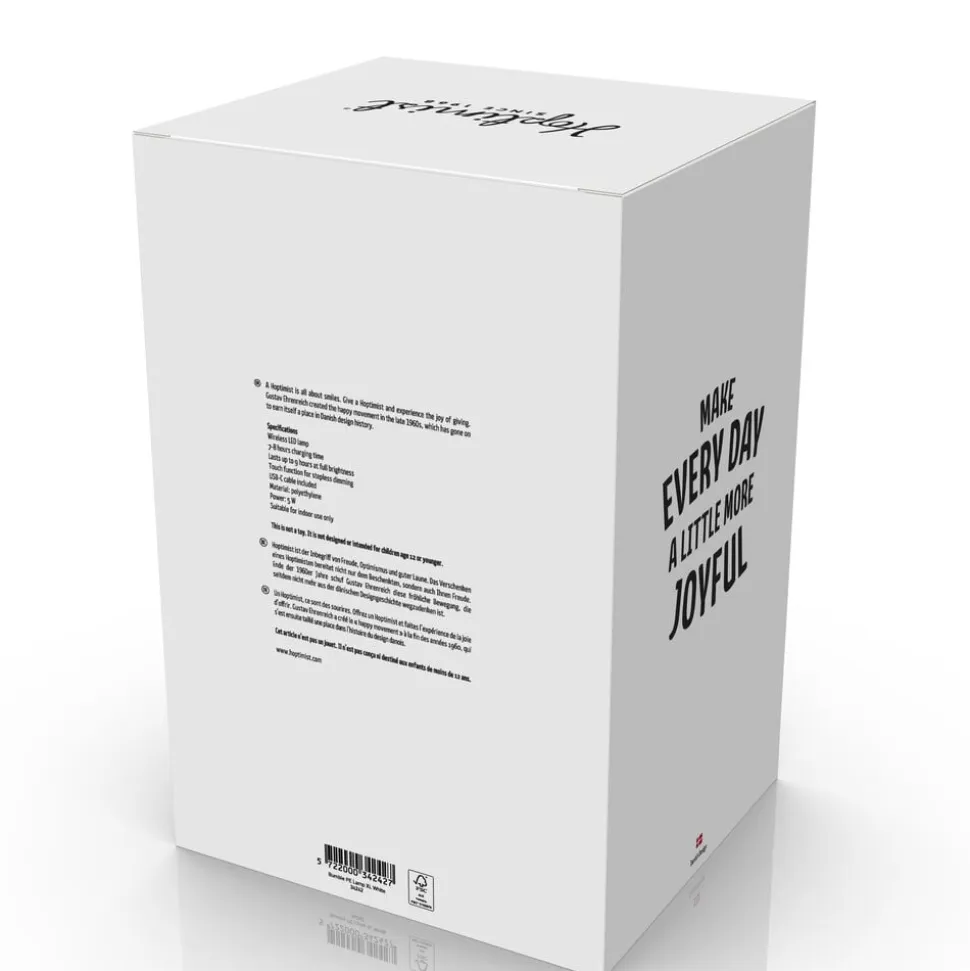 Lad den skønne Hoptimist lampe fylde rummet med lys, farver og hygge, hvor end du placerer den. Lampen skaber glæde i hjemmet, uanset om du lader den flytte ind på skrivebordet, i dit favorithjørne eller på natbordet – helt uden besværlige ledninger. Og med det bløde, douchede og næsten gennemsigtige materiale har den trådløse lampe et nærmest magisk skær. Lampens touch-funktion gør det nemt at tænde, slukke og tilpasse lysstyrken med en enkelt berøring. Et let tryk på toppen tænder eller slukker lyset, mens et vedvarende tryk justerer lysstyrken, som det passer dig bedst. Efter 7-8 timers opladning er lampen klar til at sprede glæde op til 9 timer, afhængigt af den valgte lysstyrke. Oplades med medfølgende USB-C kabel. H 23 cm, D 15 cm