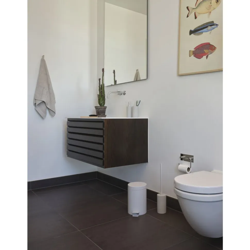 Med Solo badserie er der helt rene linjer. Produkterne er samtidig holdt i rene farver og står rent, flot og funktionelt i badeværelset. Sæbedispenser, tandbørstekrus, toiletbørste og pedalspand matcher hinanden perfekt.