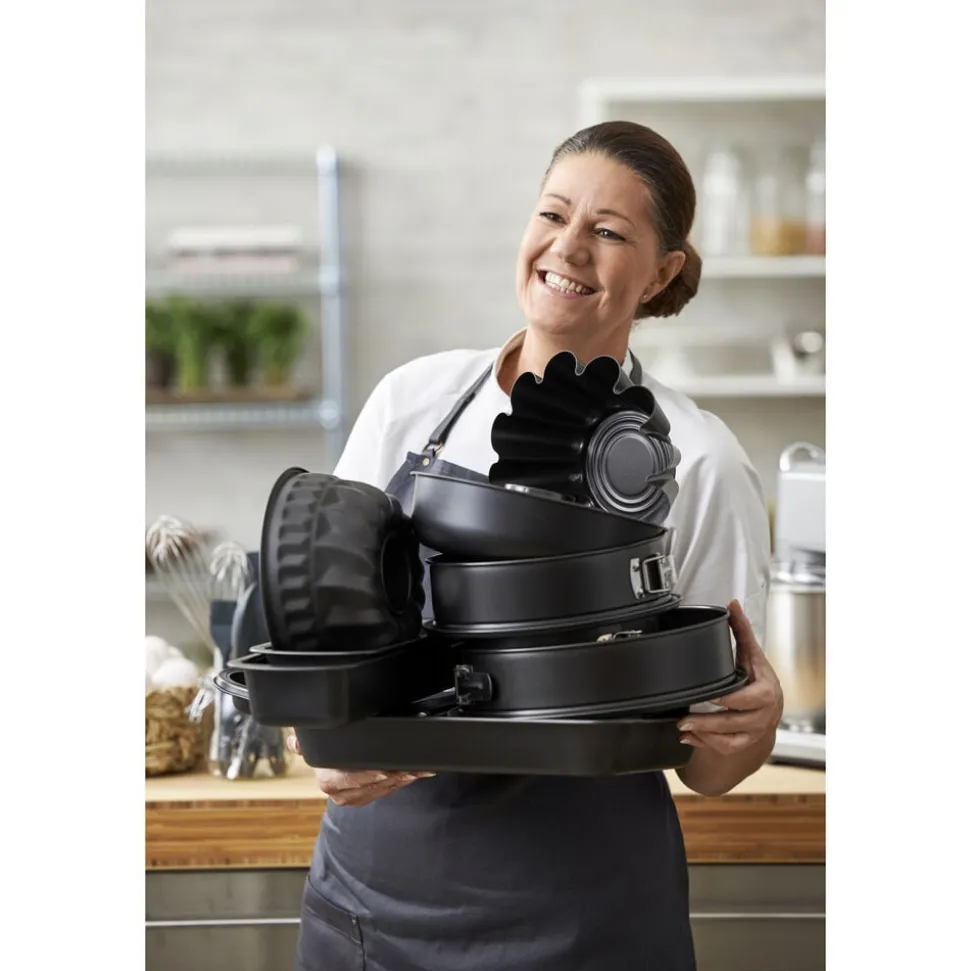 Let stålform med non-stick-belægning, som slipper nemt og er let at rengøre. Formen rummer 2,2 liter, er 7,6 cm høj og anvendes til alle slags bagte rørekager som fx sandkage, gulerodskage, drømmekage, chokoladekage samt til brød og tykke lagkage- og dessertbunde.