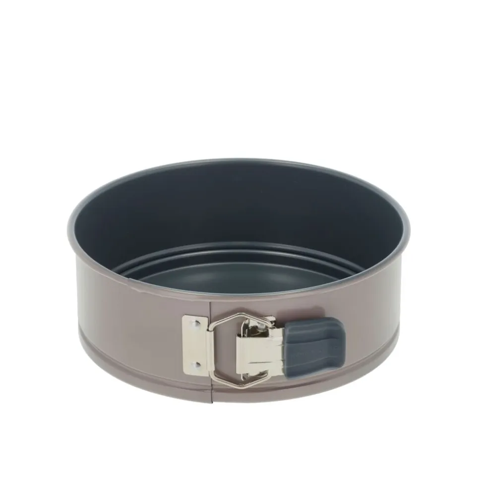 Springform i ekstra kraftigt kvalitetsstål med en bundtykkelse på 1 mm og en praktisk non-stick-belægning, som får de hjemmebagte lækkerier til at slippe formen lettere. Designet er elegant med en smuk latte farve på udvendig side. Springformen er perfekt til fx cheesecake, chokoladekage, gulerodskage samt lagkage- eller dessertbunde. Bør vaskes før brug første gang. Springformen kan tåle temperaturer op til max 230 °C.