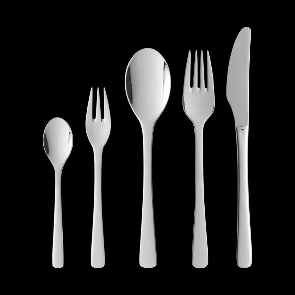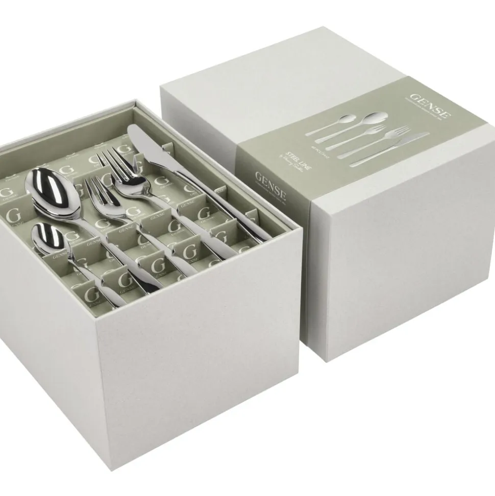 Med en kombination af elegant formgivning og behagelige linjer i rustfrit stål passer Steel Line perfekt ind i de fleste indretninger og borddækninger. Steel Line er skabt af Henning Seidelin, en af Danmarks bedste billedhuggere. Tåler opvaskemaskine.