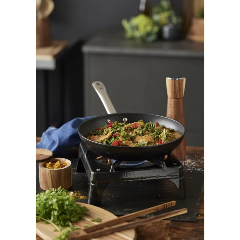 Stegepanden har en kraftig bund på 4,0 mm, hvilket sikrer god varmefordeling. Panden er velegnet til alle varmekilder – også induktion. Velegnet til ovn op til 200 grader – bemærk dog at grebet bliver varmt. Indvendig har stegepanden en 2-lags keramisk belægning, og udvendigt en silikone-polyester-belægning, hvilket sikrer let rengøring. Alle typer køkkenredskaber kan anvendes. Den keramiske belægning er fremstillet af råvarer, der ikke indeholder PFAS. Velegnet til opvaskemaskine.