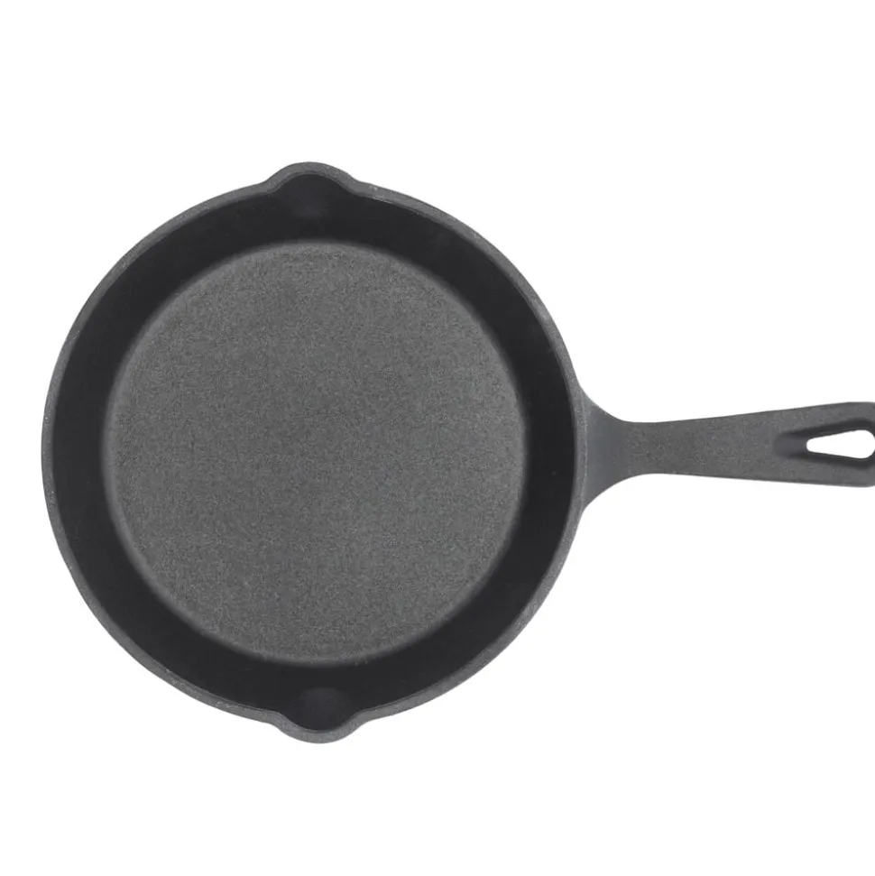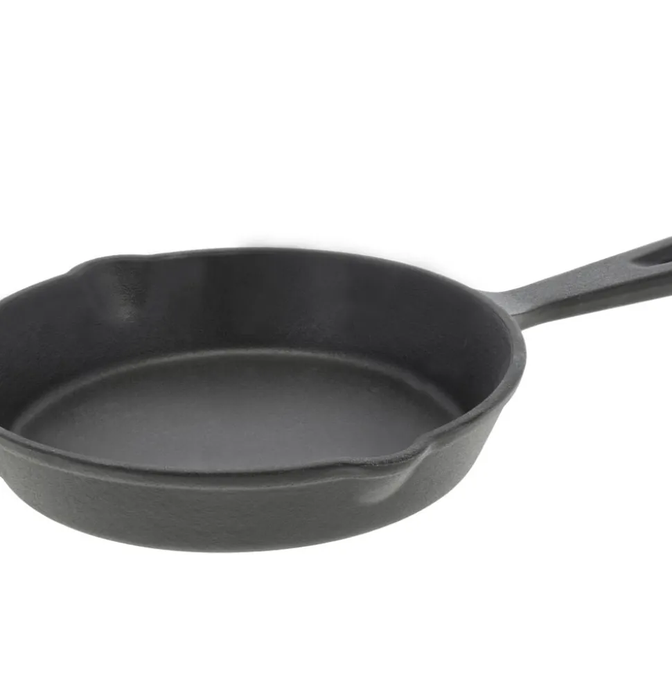 Ministegepande, dia. 14 cm, fremstillet i oliebehandlet støbejern. Oliebehandlingen lægger bunden til en naturlig belægning, som giver gode stegeegenskaber, og støbejernet fastholder og fordeler varmen jævnt og effektivt.