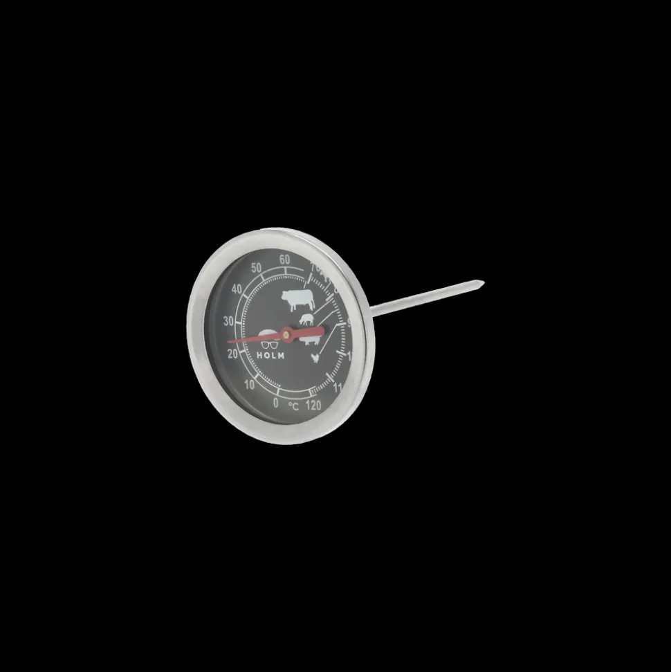 Stegetermometer med spyd og analogt display. Måler temperaturer fra 0 til 120 °C.