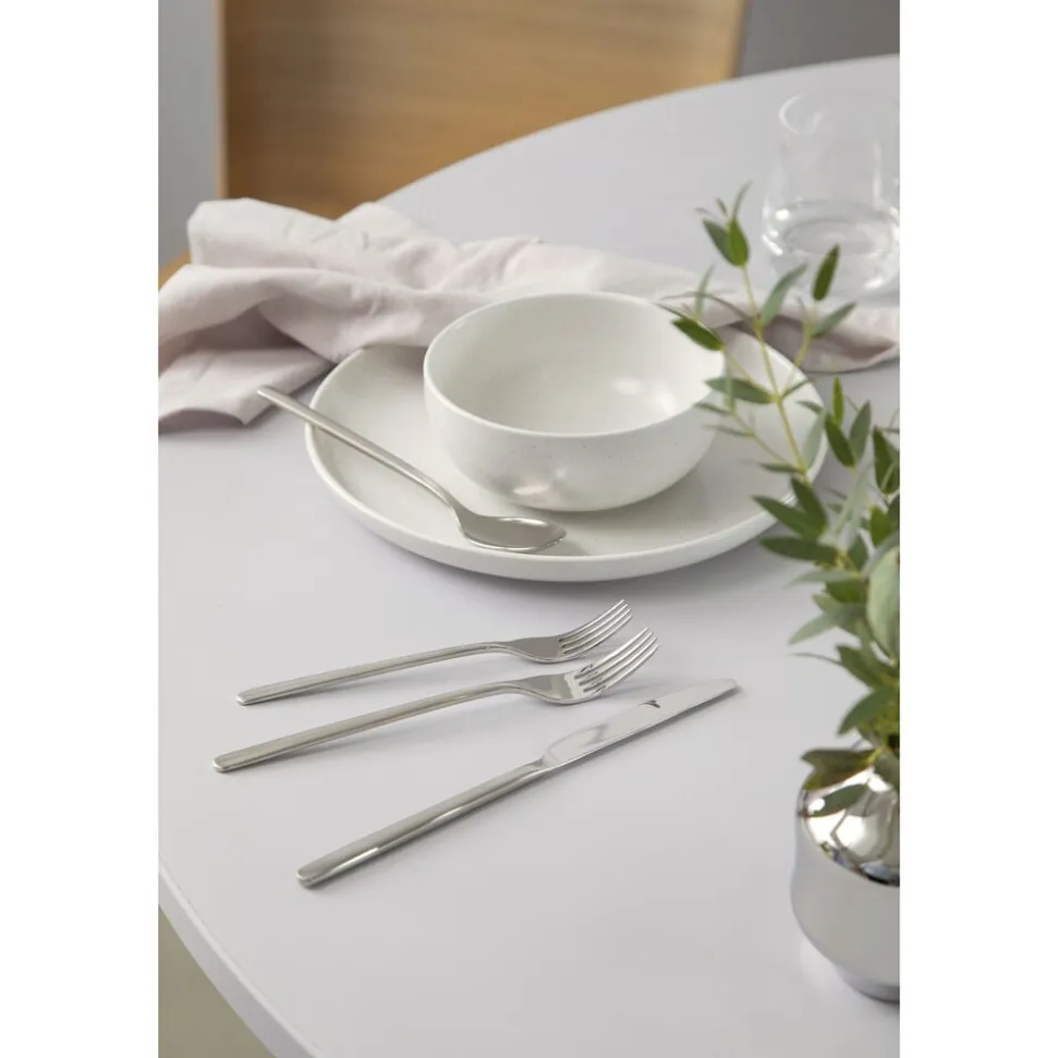 Med sin enkelhed og lange linjer understreger de bløde skulpturelle kurver og de roligt udformede detaljer den moderne og nordiske sans. Et underspillet, rent design skaber et elegant bestik, der nærmest svæver over bordet.