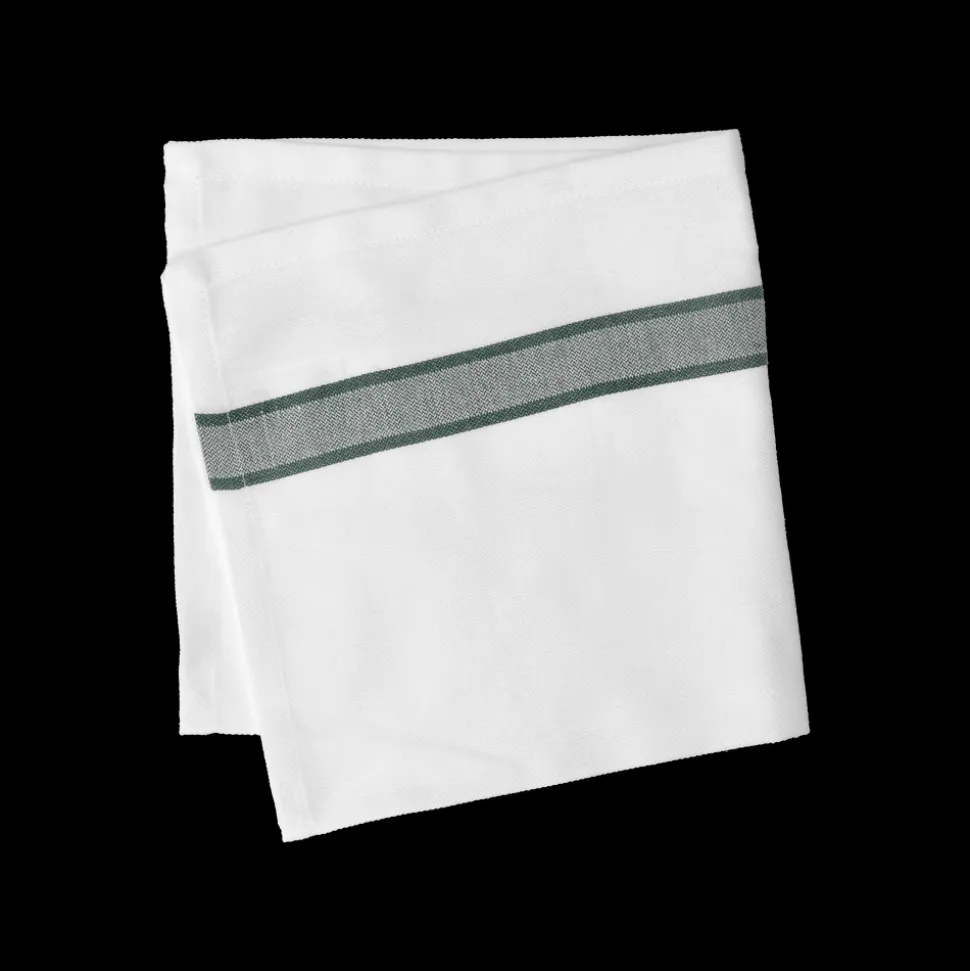 Stofserviet fremstillet i 100 % bomuld. Det klassiske hvide stof kombineret med en enkel farvet stribe giver mulighed for et let og personligt udtryk. Servietten er blød, behagelig og nem at folde, så du kan variere udtrykket, når borddækningen skal have lidt ekstra opmærksomhed.