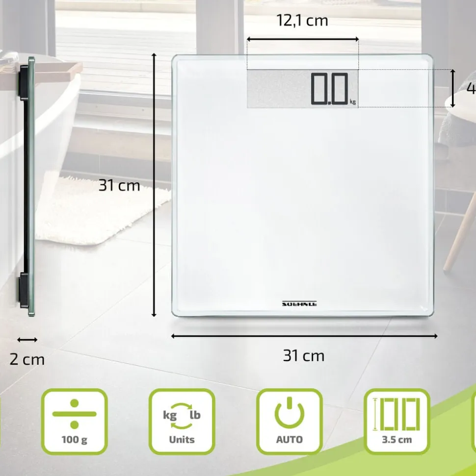 Style Sense Comfort 100 er en praktisk personvægt i smart design. Den er udstyret med en stabil platform i 8 mm sikkerhedsglas og tænder automatisk, når du træder op. Vægten måler op til 180 kg interval på 100 g, og resultatet vises tydeligt på det letlæselige display. Du kan vælge mellem kg, lb eller st.