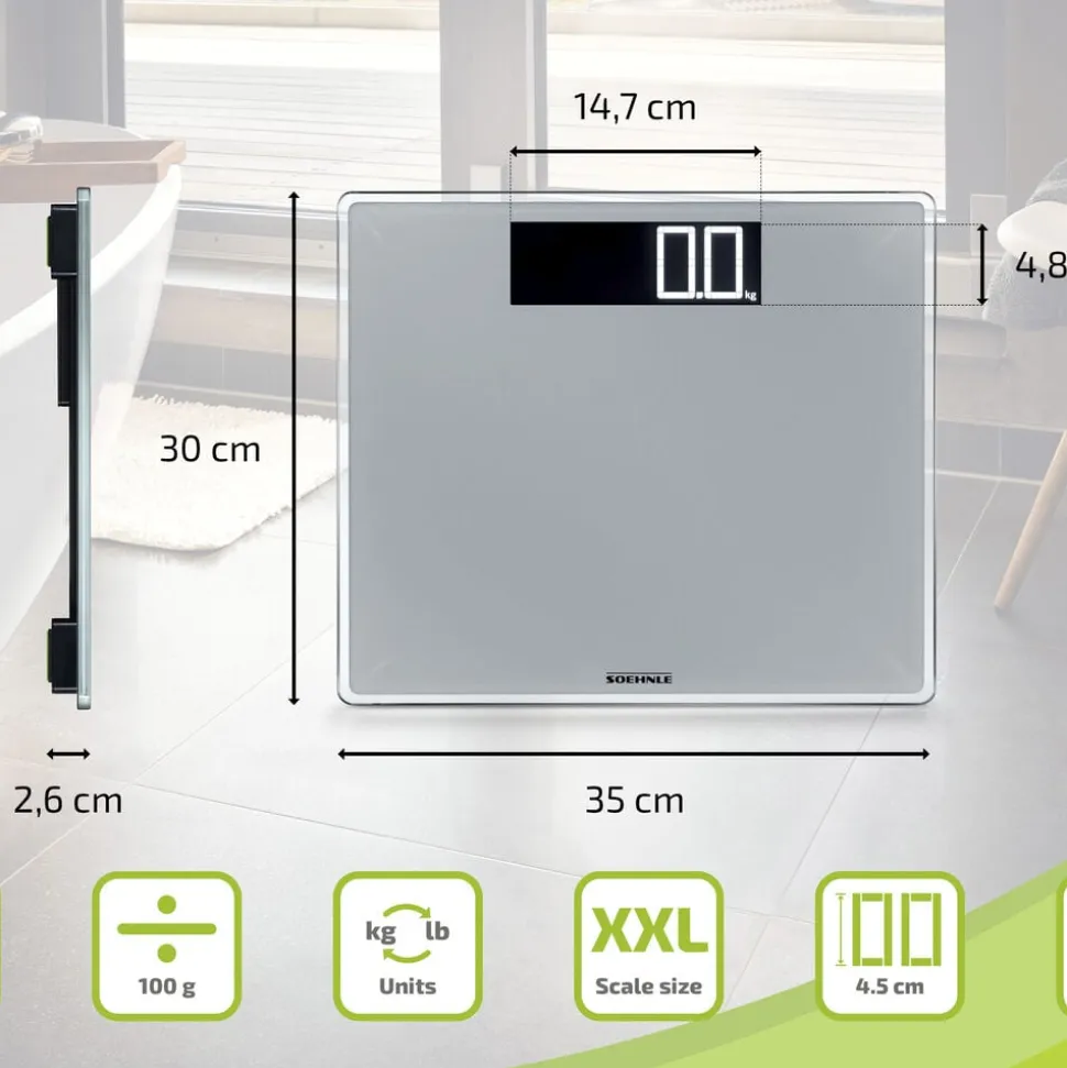 Style Sense Comfort 600 kombinerer høj kapacitet og nem aflæsning. Den ekstra store LCD-skærm med 4,5 cm høje tal gør det let at aflæse vægten. Vægten starter automatisk, når du stiller dig op, og slukker igen efter brug. Den vejer op til 200 kg med interval på 100 g og kan vise vægten i kg, lb eller st.