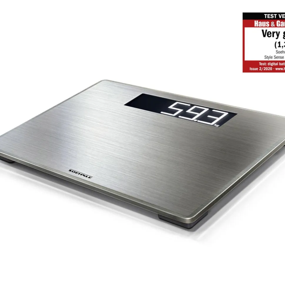 Style Sense Safe 300 er en personvægt i stilrent design med en platform i rustfrit stål. Displayet er oplyst og viser vægten tydeligt med store 4,5 cm tal. Vægten starter automatisk, når du træder op, og slukker igen, når du er færdig. Vejer op til 180 kg med interval på 100 g.
