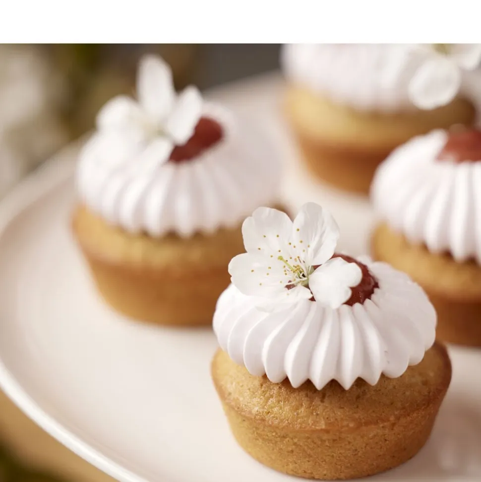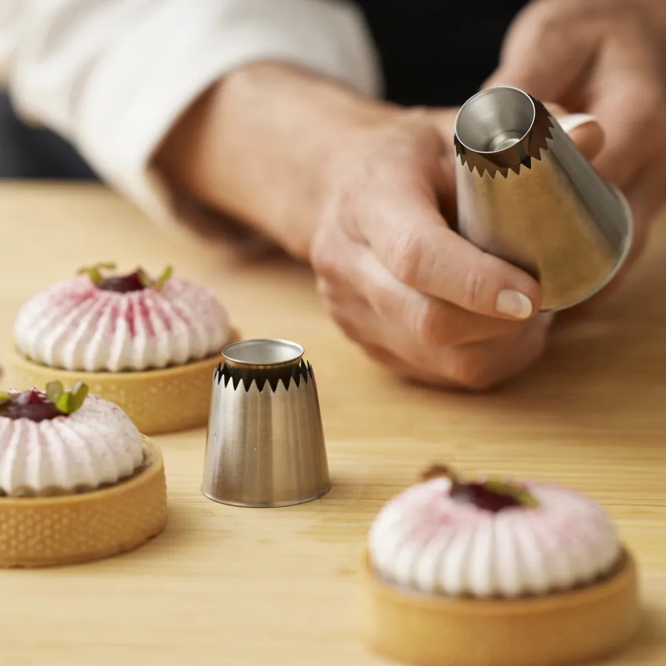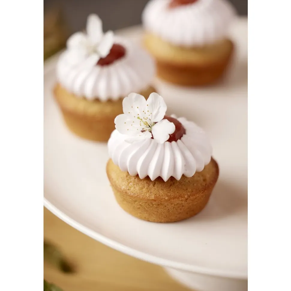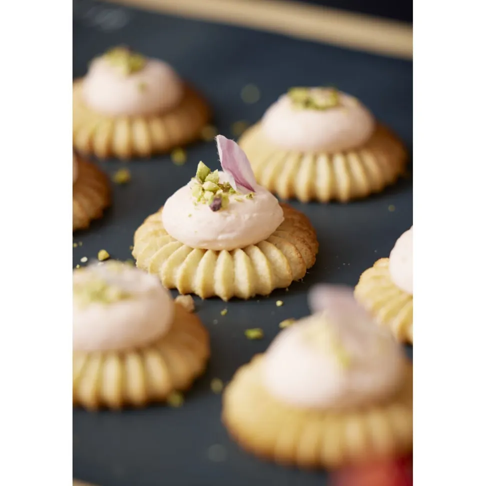 De to Sultan-tyller laver en fin stjernekruset ring med et glat hul i midten i to størrelser. Tyllen er rigtig god til marengs, smørcreme, piskede cremer, blød kransekagemasse, blød småkagedej m.m. Pynt f.eks. dine muffins eller tærter med lækker creme og fyld hullet med god marmelade. Det ser både smukt ud og smager superskønt.