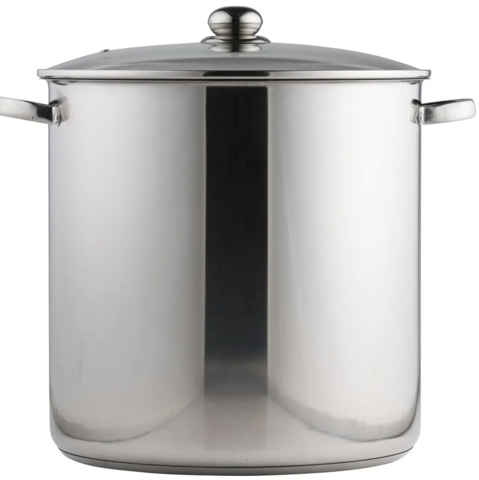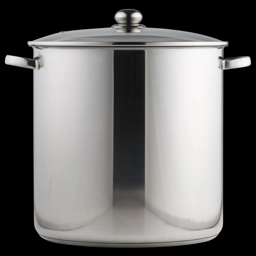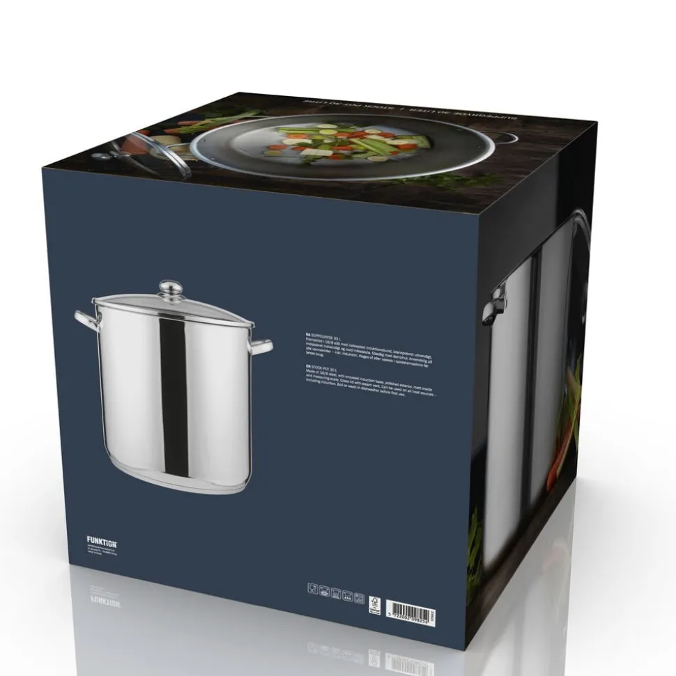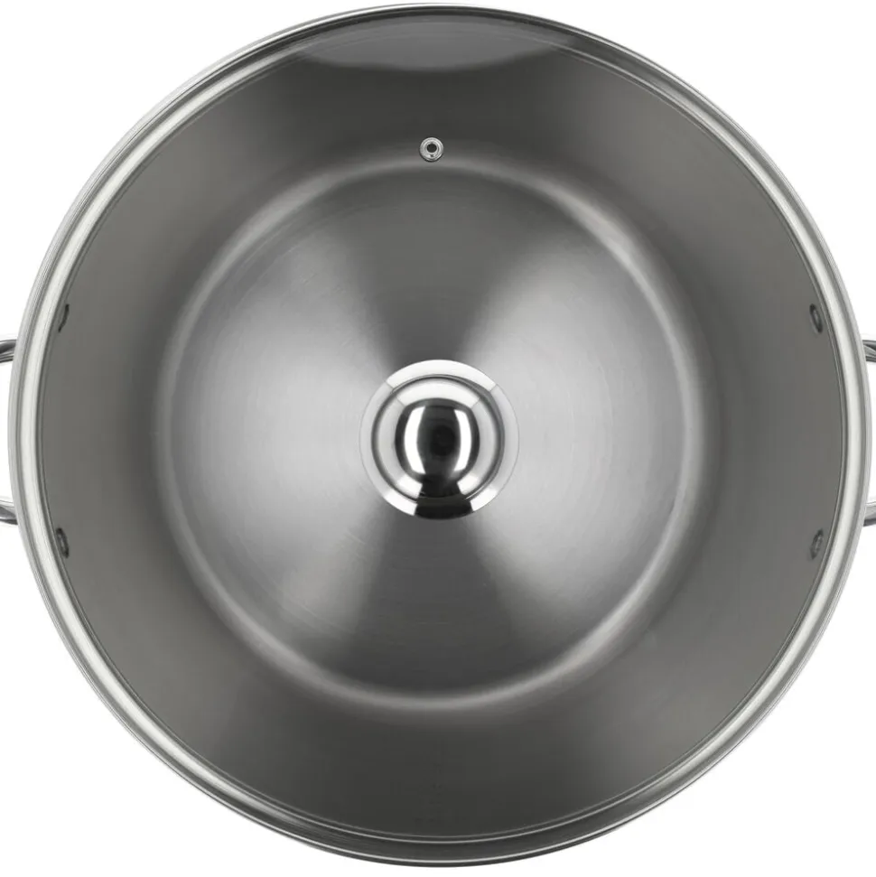 Suppegryde, 30 liter, fremstillet i 18/8 stål med indkapslet induktionsbund, blankpoleret udvendigt, matpoleret indvendigt og med måleskala.